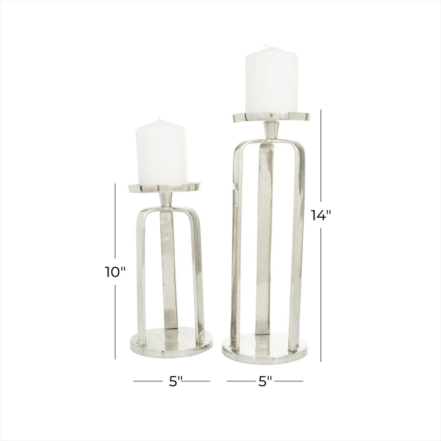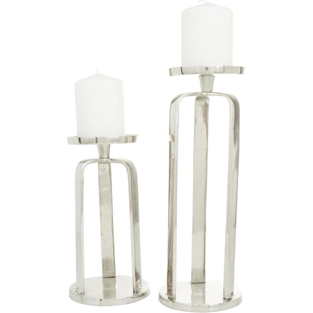 2 SMALL SIZE CANDLE BASE: Each silver aluminum metal candle holder measures 4.95L x 5.05W x 13.60H , 5.05L x 5.05W x 9.90H inches, and collectively weighs 2.59 lbs