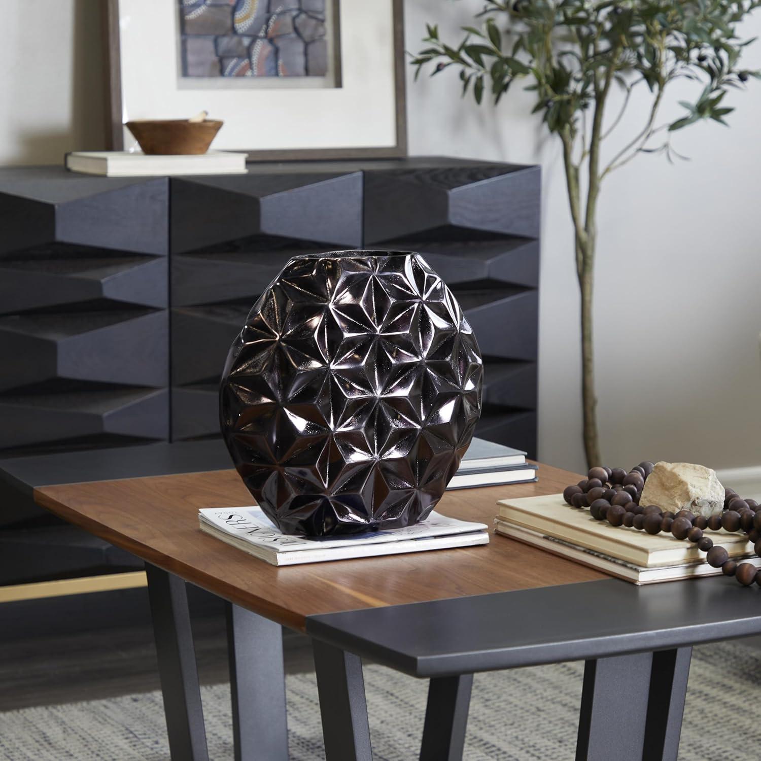 CosmoLiving by Cosmopolitan Aluminum Metal Geometric Decorative Vase Faceted Centerpiece Vase, Flower Vase for Home Decoration 14" x 5" x 13", Gold(Black)