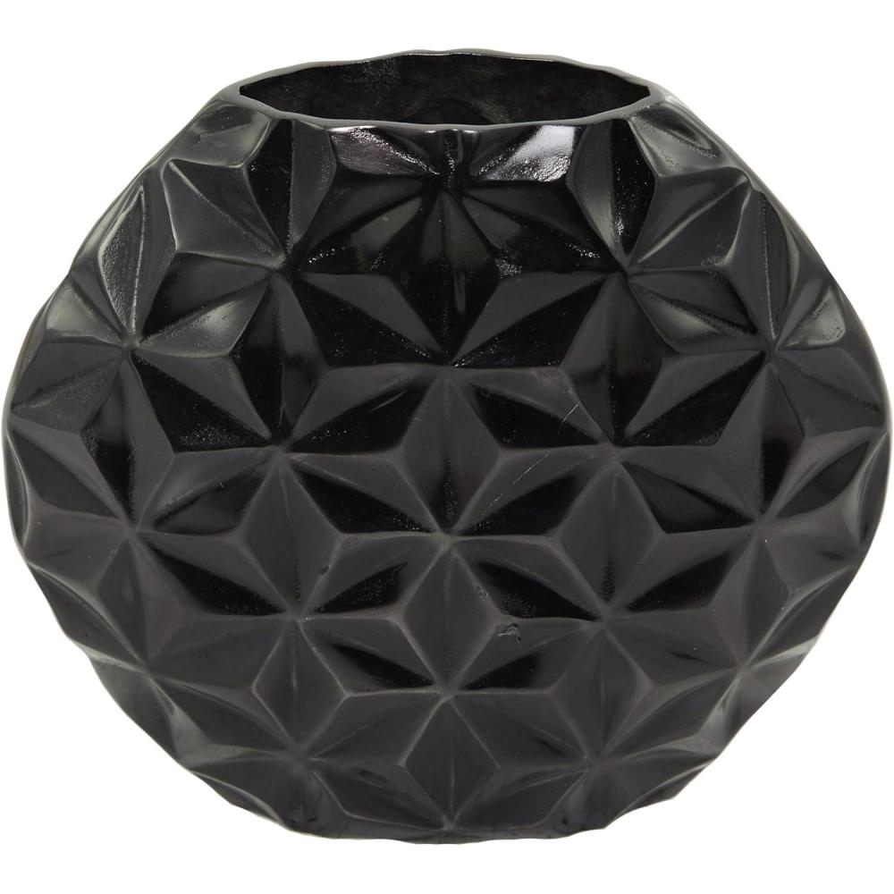 CosmoLiving by Cosmopolitan Aluminum Metal Geometric Decorative Vase Faceted Centerpiece Vase, Flower Vase for Home Decoration 14″ x 5″ x 13″, Gold(Black)