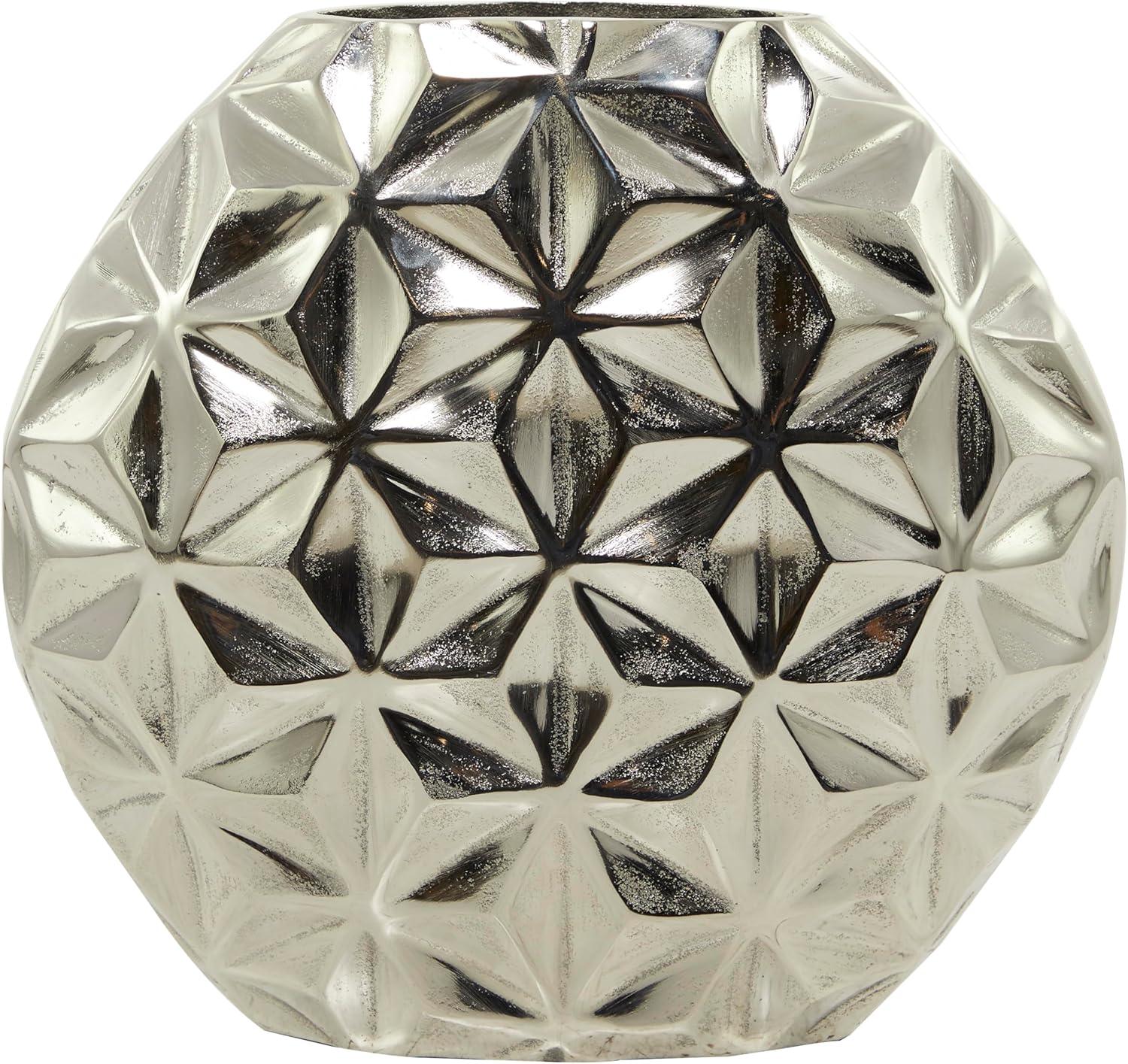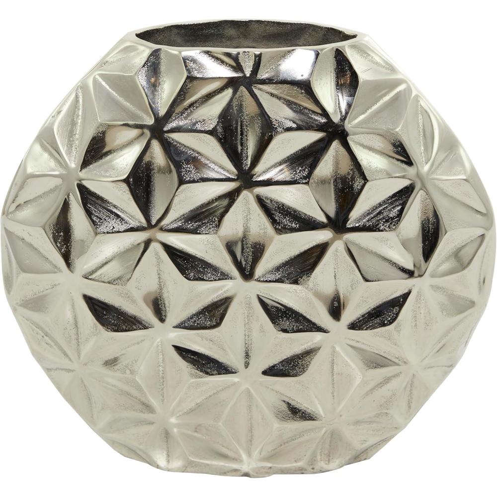 CosmoLiving by Cosmopolitan Aluminum Metal Geometric Decorative Vase Faceted Centerpiece Vase, Flower Vase for Home Decoration 14″ x 5″ x 13″, Gold(Silver)