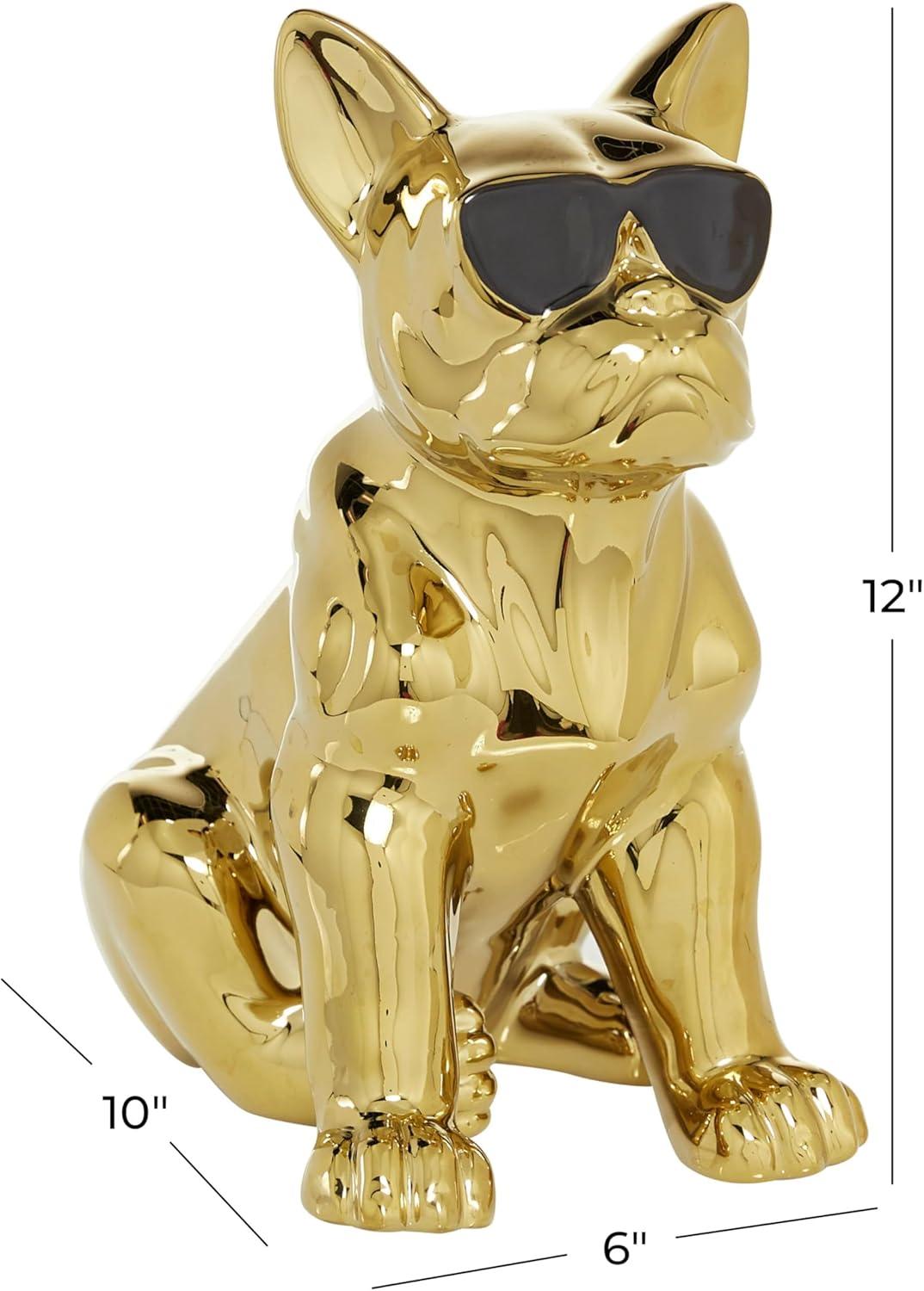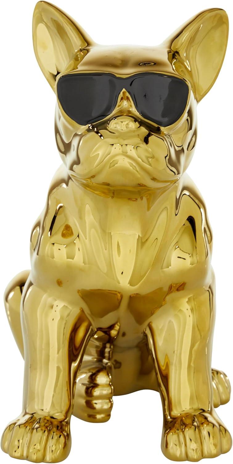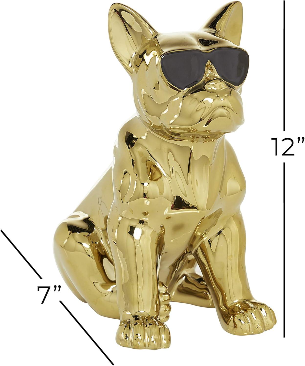 CosmoLiving by Cosmopolitan Ceramic Bulldog Decorative Sculpture Home Decor Statue with Sunglasses, Accent Figurine 6" x 10" x 12", Gold(Gold)