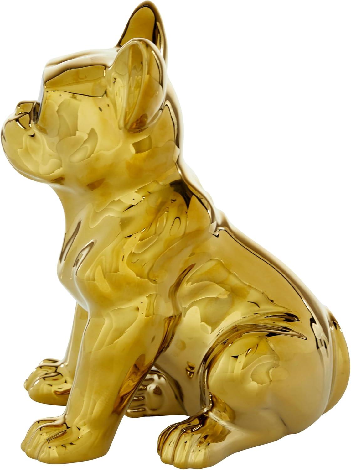 GOLD HOME DECOR FIGURINE: The bulldog is covered in a glossy gold finish with a playful adornment of matte black sunglasses, creating a striking bulldog decorative statue