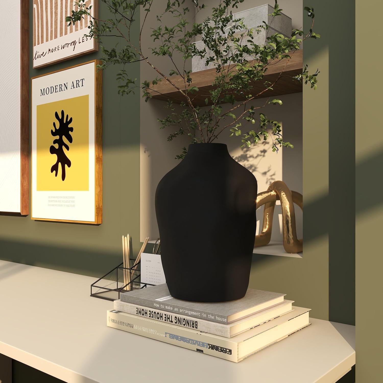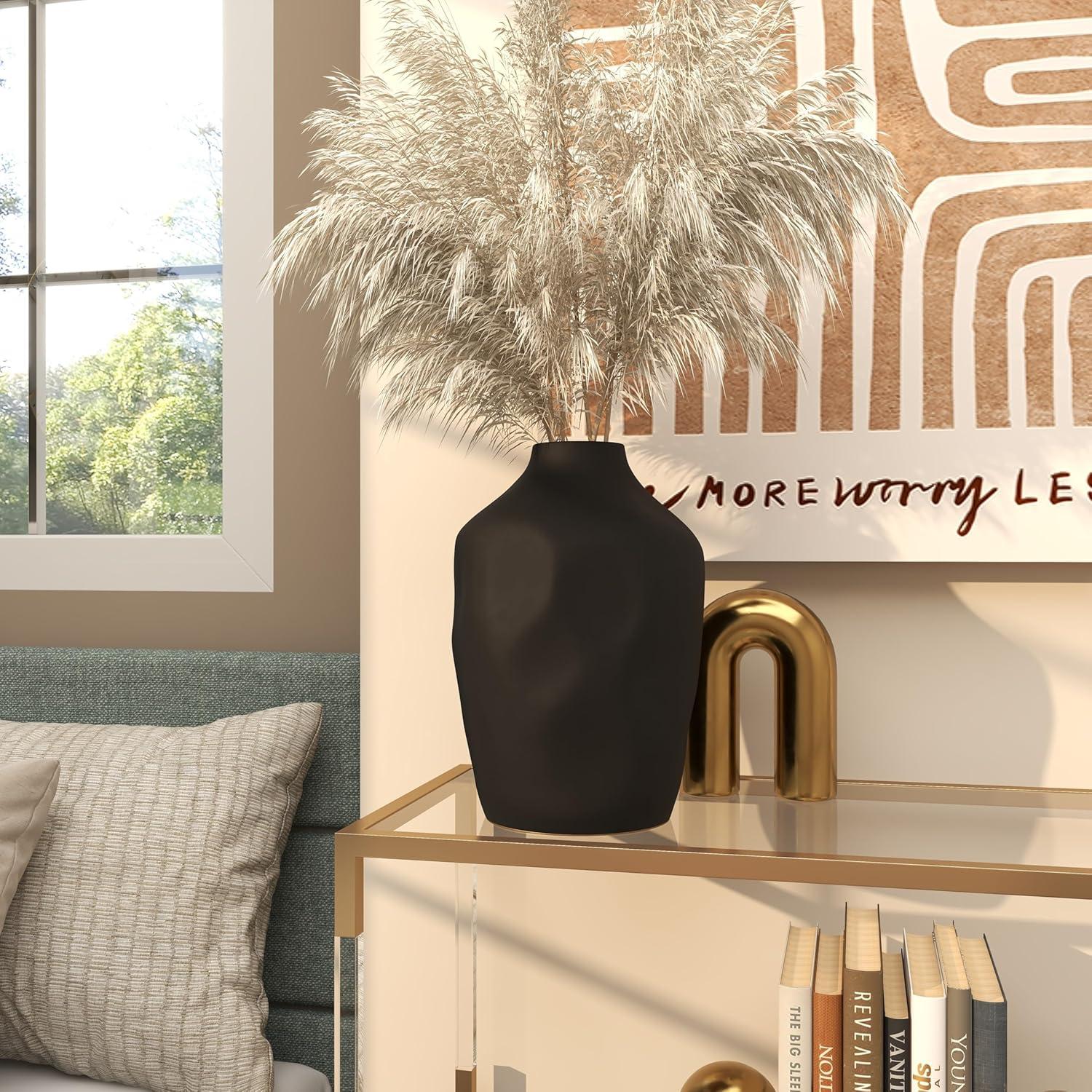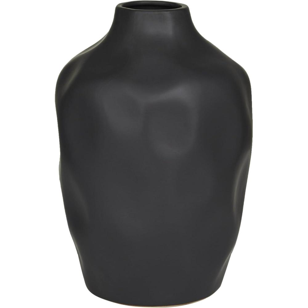 This modern vase for home decor is molded and sculpted with stoneware into a unique shape, showcasing its abstract design. This matte white vase for dried flowers has a round shape with a faceted exterior. Wipe clean with a dry cloth. Enhance your living room, bedroom of office space with this white centerpiece vase styled with dried pampas grass or vibrant dried flowers. Designed with felt or rubber stoppers at the base that prevent scratching furniture and table tops, as well as sliding around. This item ships in 1 carton. Suitable for indoor use only. This item ships fully assembled in one piece. This is a single white colored vase. Modern style. Vase has a 2.60 in mouth opening.
