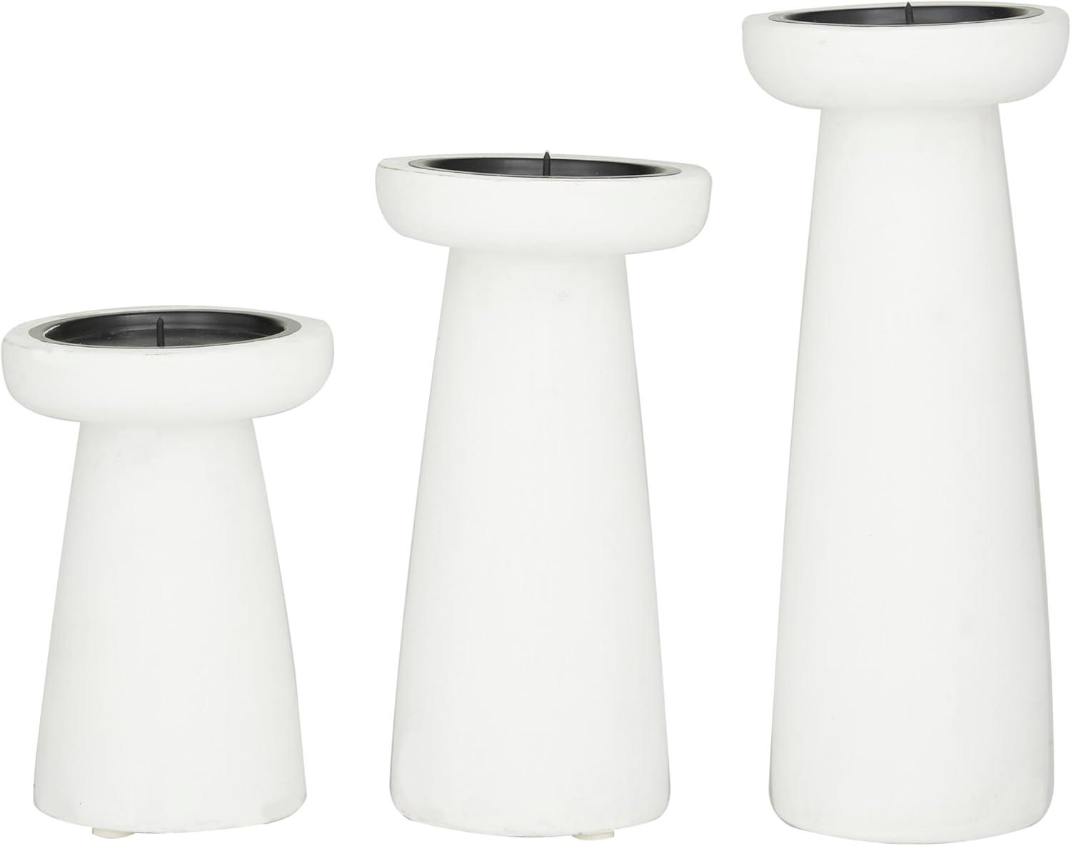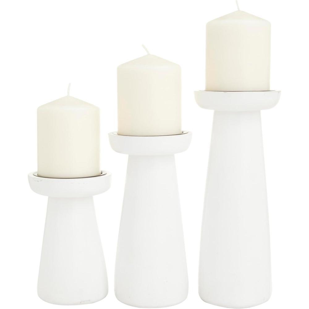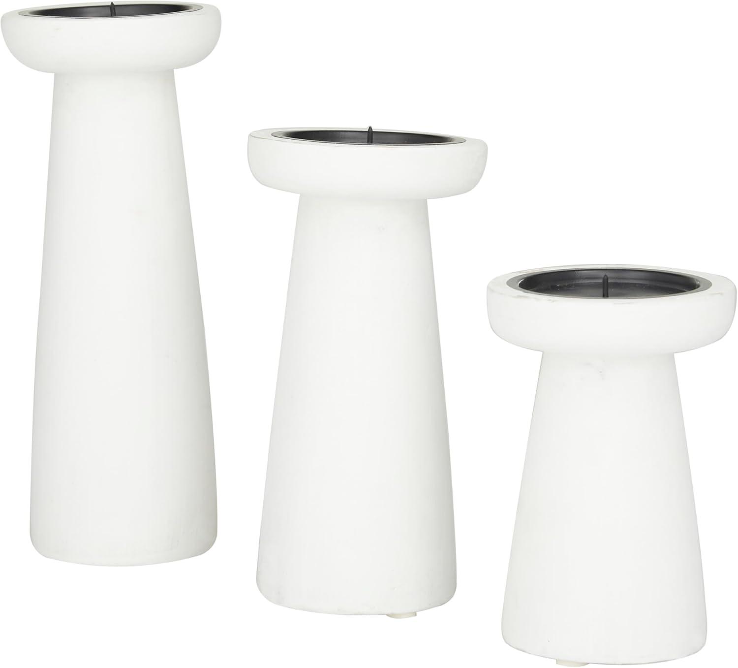 CosmoLiving by Cosmopolitan Mango Wood Decorative Candle Holder Pillar Candle Stand, Set of 3 Candlestick Holder 10″, 8″, 6″ H, Dark Gray(White)