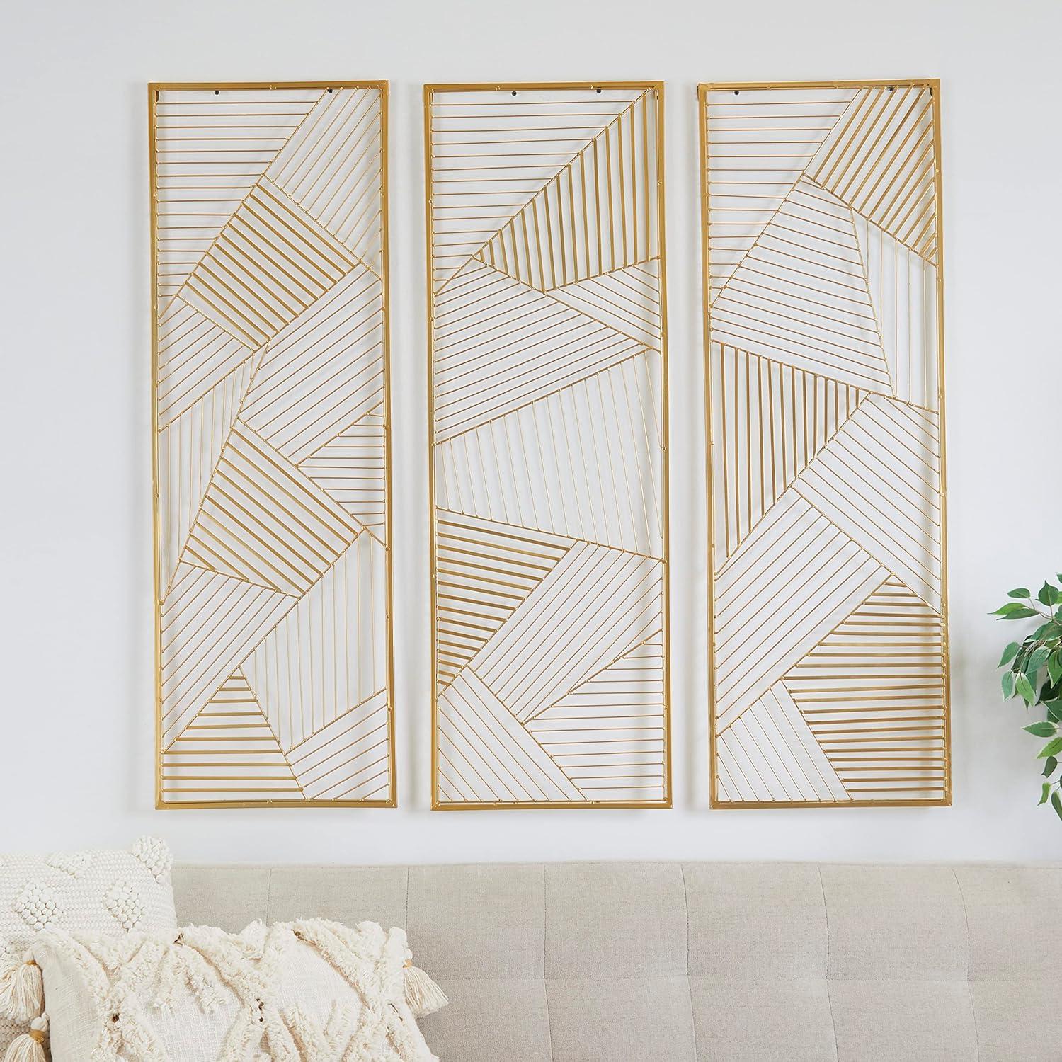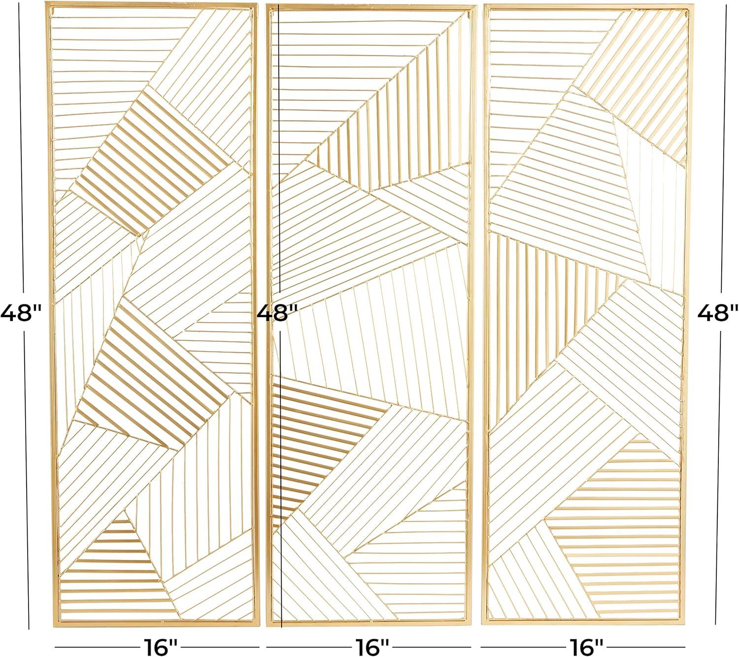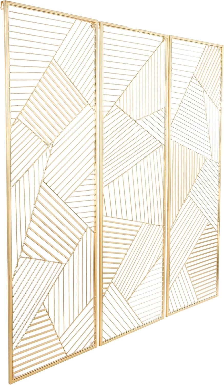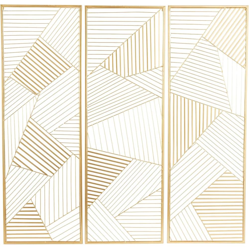 CosmoLiving by Cosmopolitan Metal Geometric Wall Decor with Gold Frame, Set of 3 16"W, 48"H, Gold