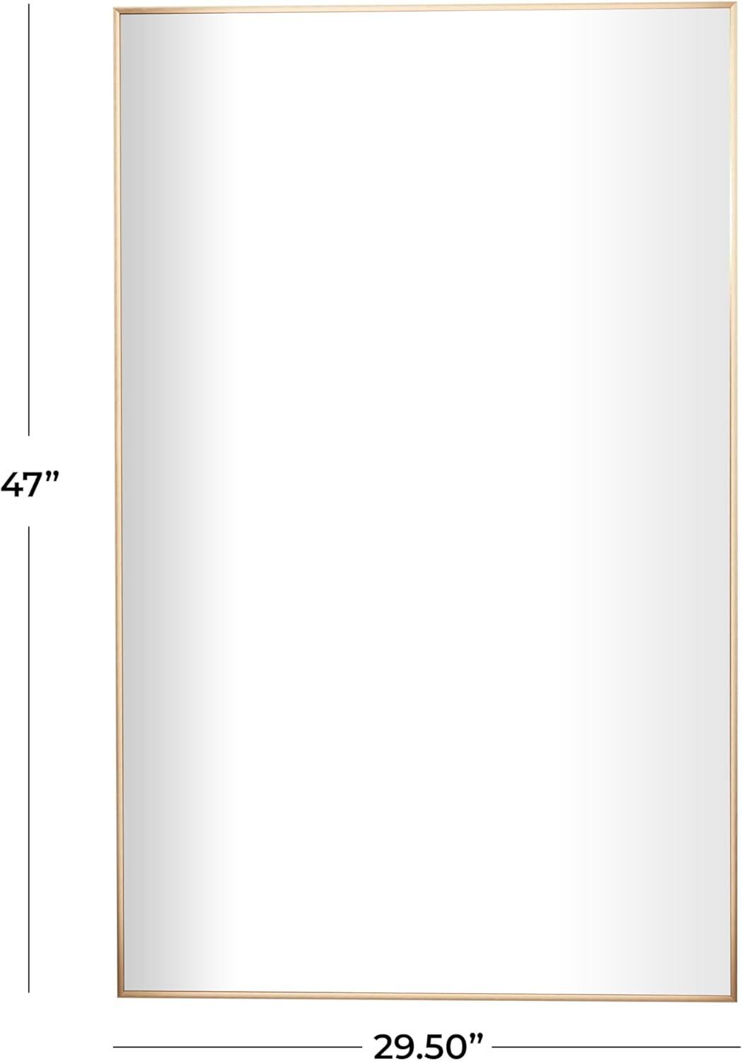 LARGE SIZE MIRROR FOR WALL DÉCOR: The gold metal wall mirror measures 29.50L x 1W x 47H inches, and weighs 19 lbs