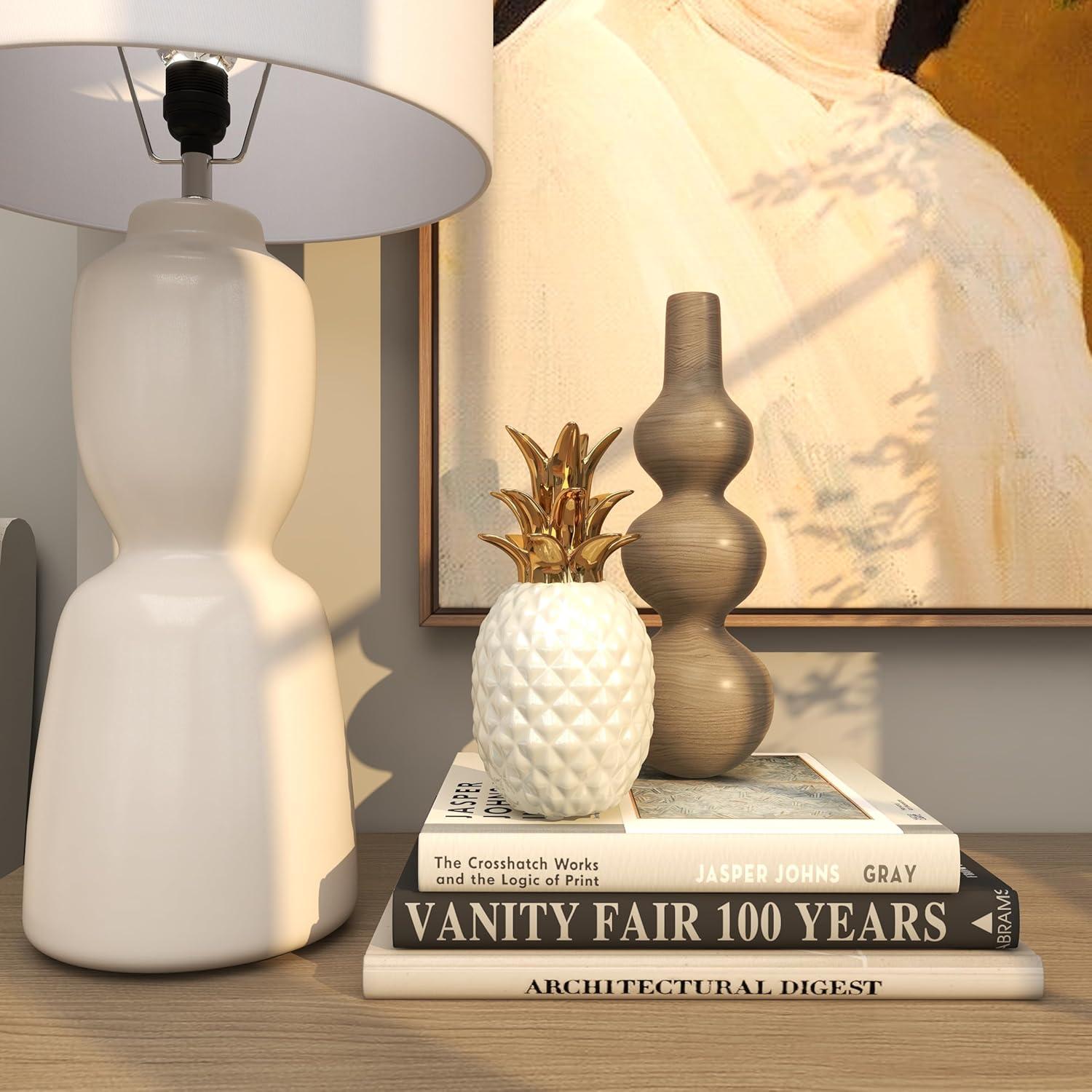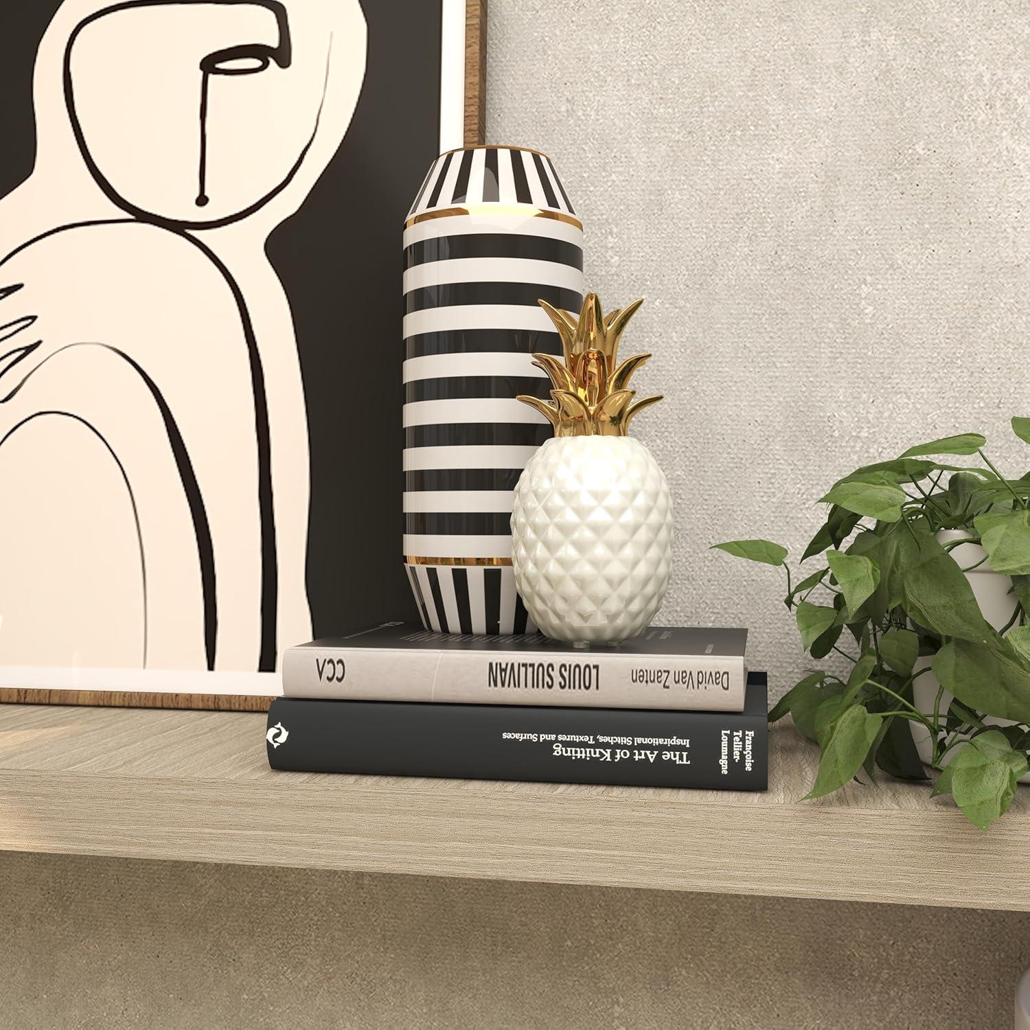 WHITE AND GOLD HOME DECOR FIGURINE: Features a glossy white-finished pineapple body and a metallic gold leaf accent