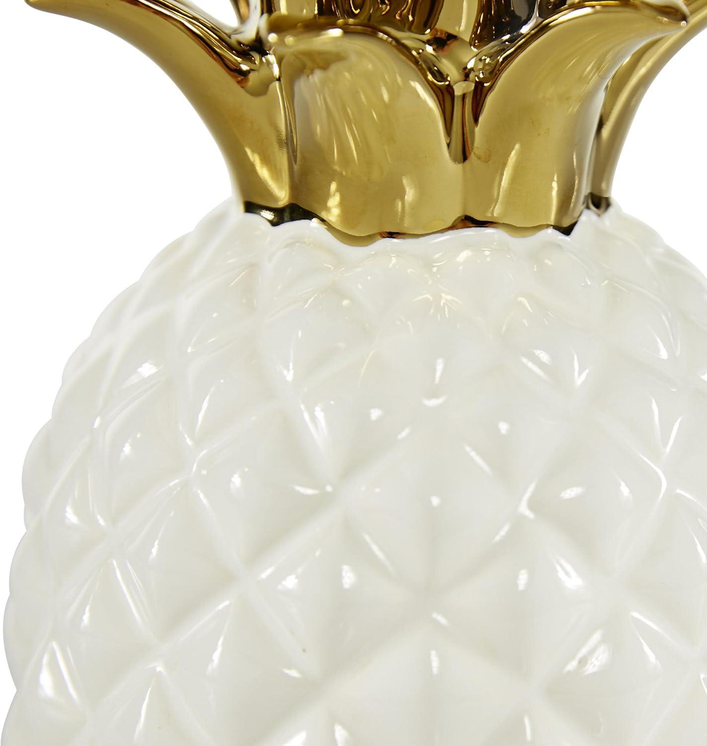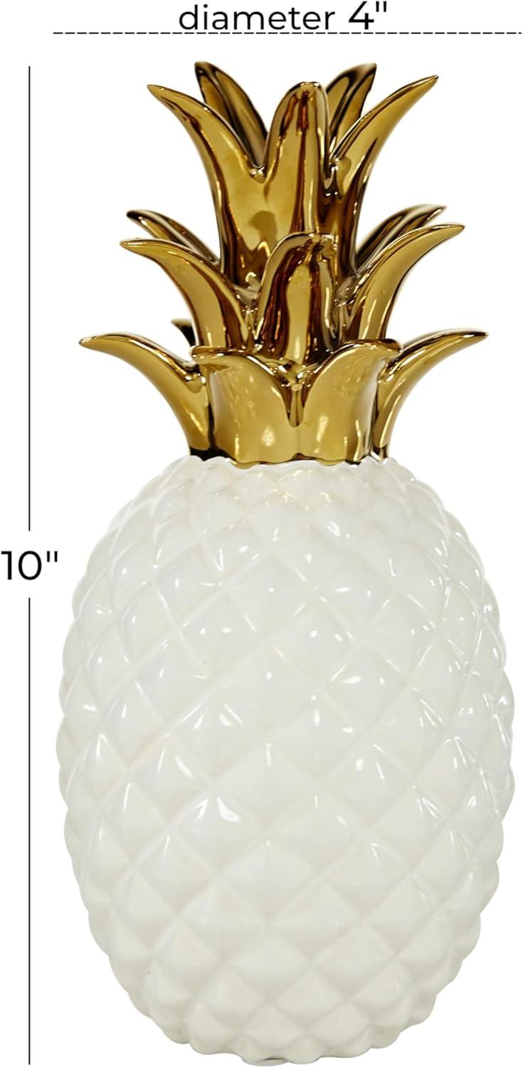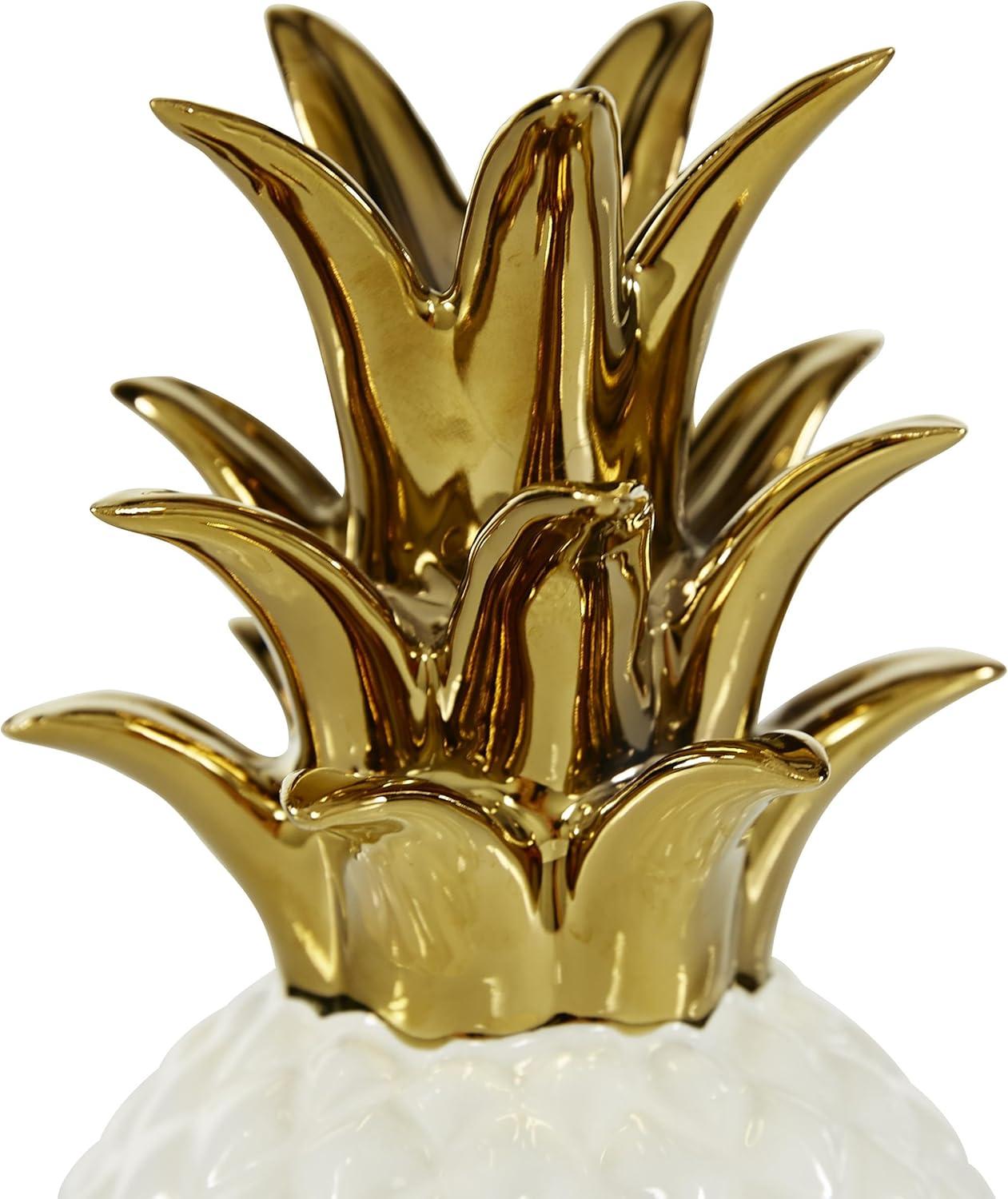 CosmoLiving by Cosmopolitan Porcelain Ceramic Fruit Decorative Sculpture Pineapple Home Decor Statue with Gold Leaves, Accent Figurine 4" x 4" x 10", White