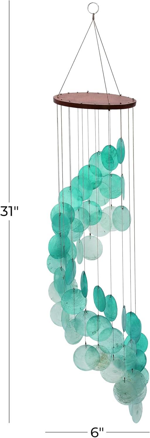 B>description: ≪. every time the wind blows, your living space will be filled with a soothing sound that will come from this shell wind Chime. This gorgeous light blue color wind Chime would be a stylish addition to your home interior. This wind Chime has gorgeous round shaped shells in shades of light blue and white. This shell wind Chime is light weight but needs to handled it with care. This wind Chime has 6 inches rope hence it's easy to Dangle it in any area. <. decorate it in your living room, bedroom, kitchen or outdoors. Apart from indoor it can be adorned outdoor also. If you have a outdoor sitting area, this wind Chime can be part of it too. You can even think of gifting it then it would be great idea. You can suggest this wind Chime people who are liked it at your home and want to buy it. <