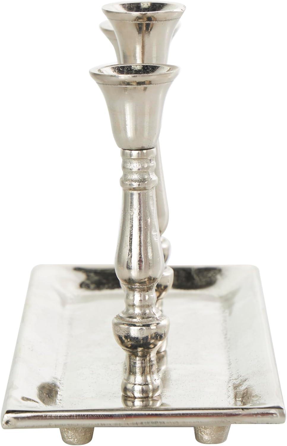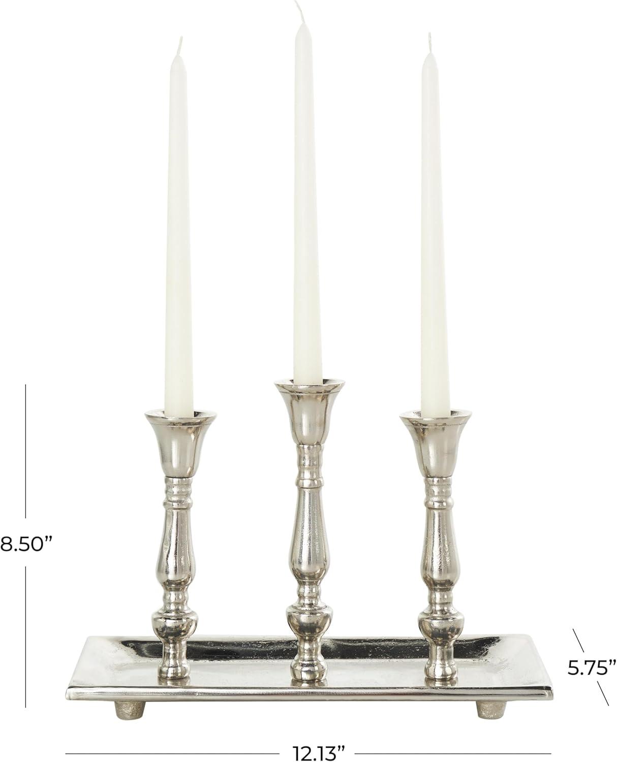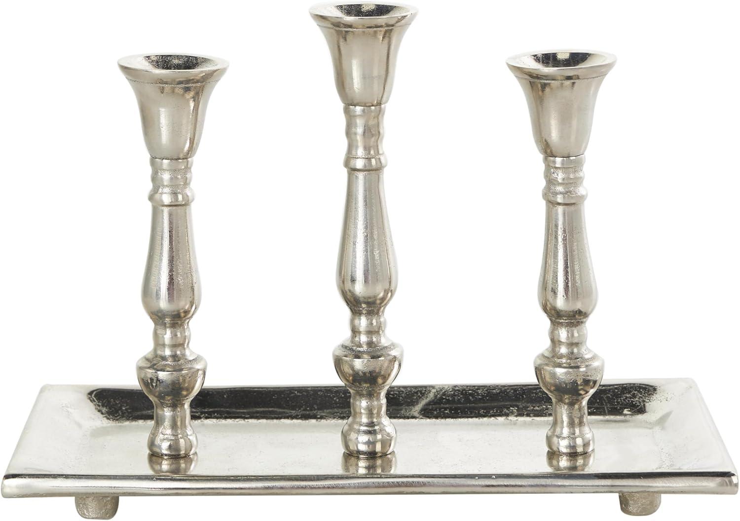 Deco 79 Aluminum Metal 3 Candle Candelabra with Candle Plate, 12" x 6" x 9", Silver