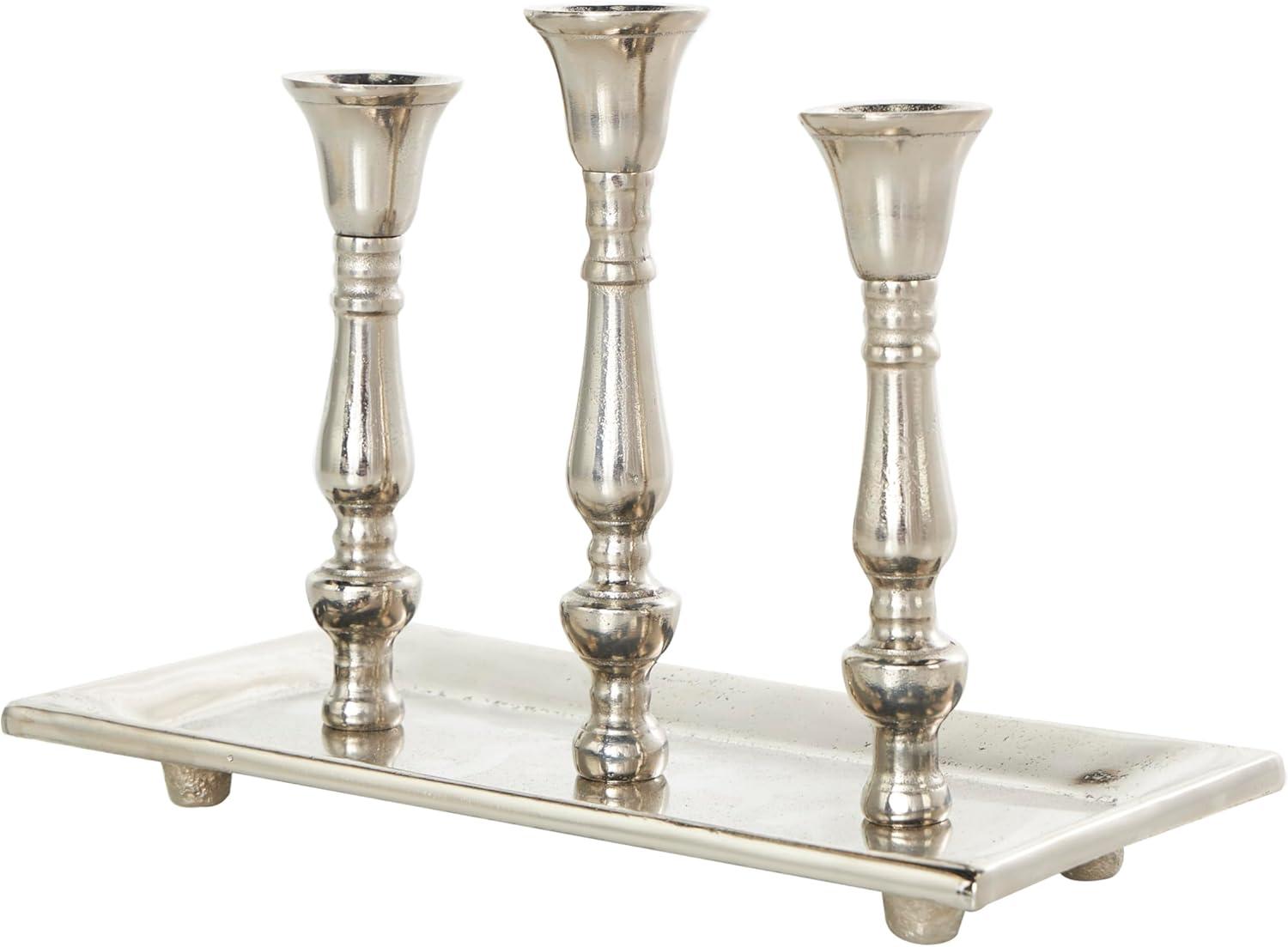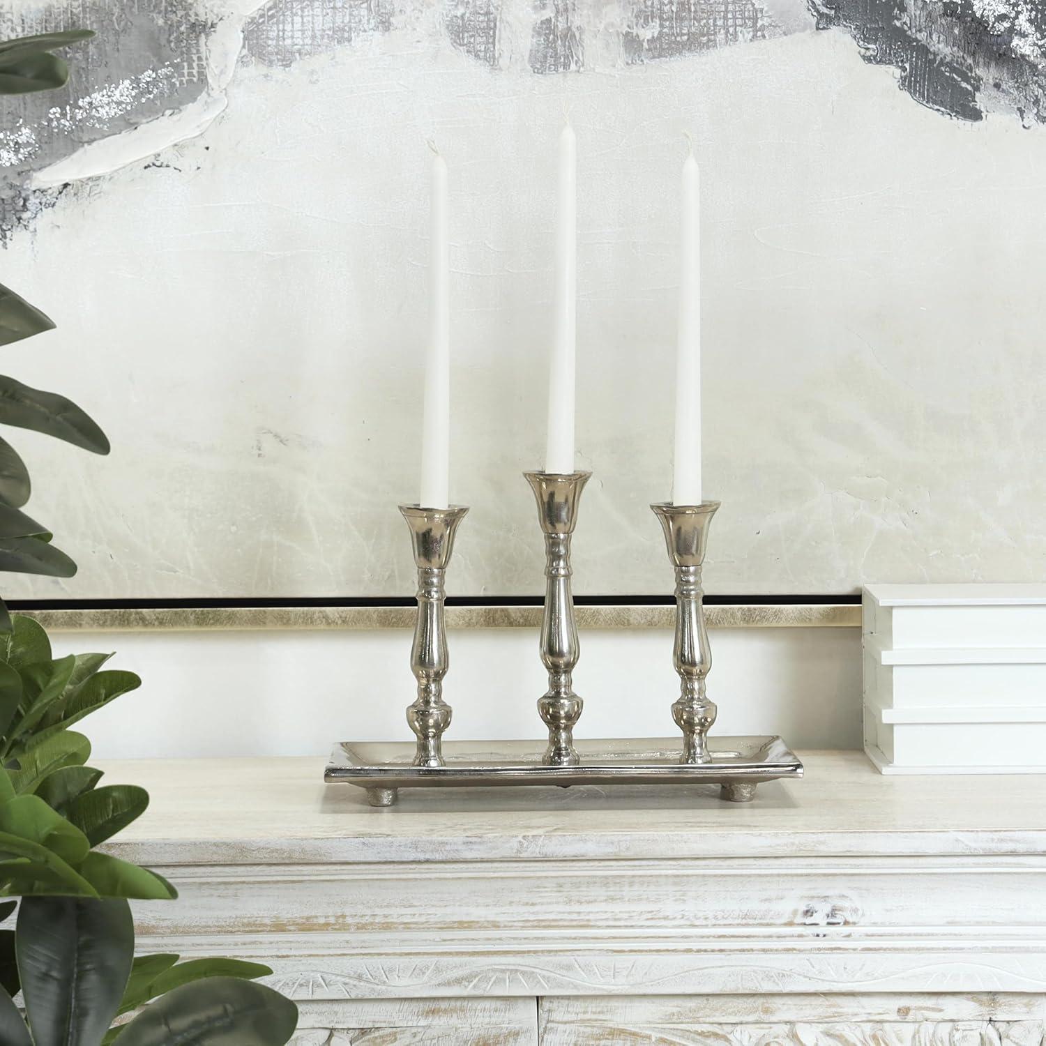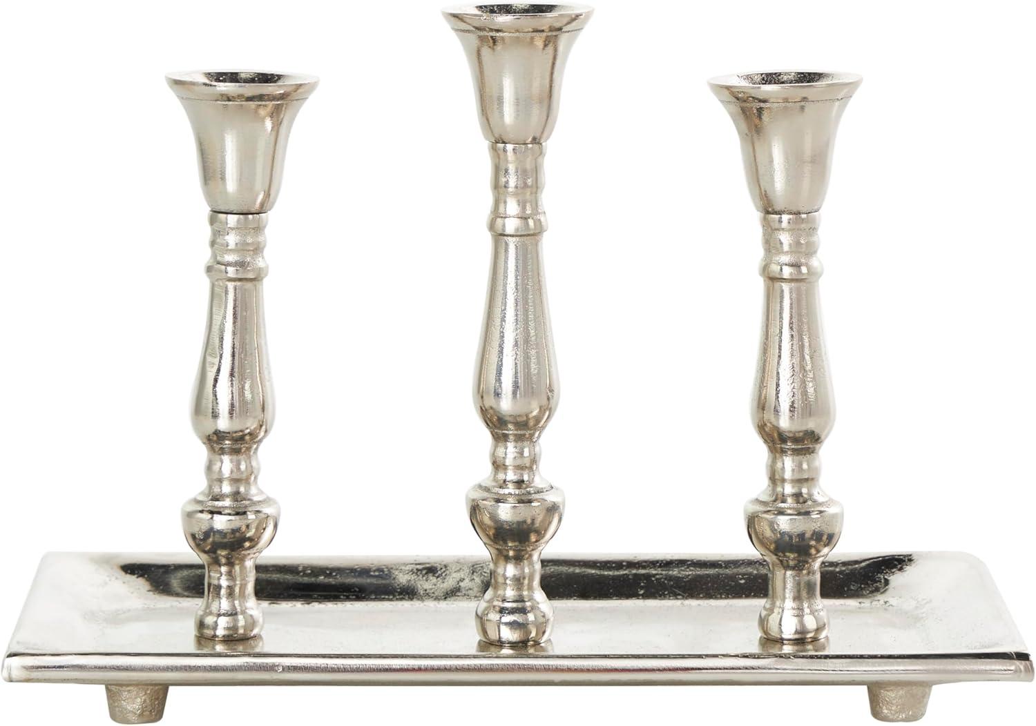 Deco 79 Aluminum Metal 3 Candle Candelabra with Candle Plate, 12" x 6" x 9", Silver