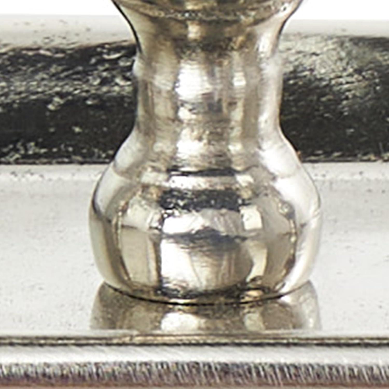 SMALL SIZE: The silver aluminum metal candelabra measures 12.13L x 5.75W x 8.50H inches, and weighs 3 lbs
