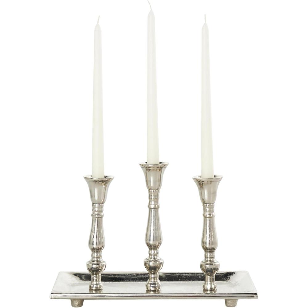 Deco 79 Aluminum Metal 3 Candle Candelabra with Candle Plate, 12″ x 6″ x 9″, Silver
