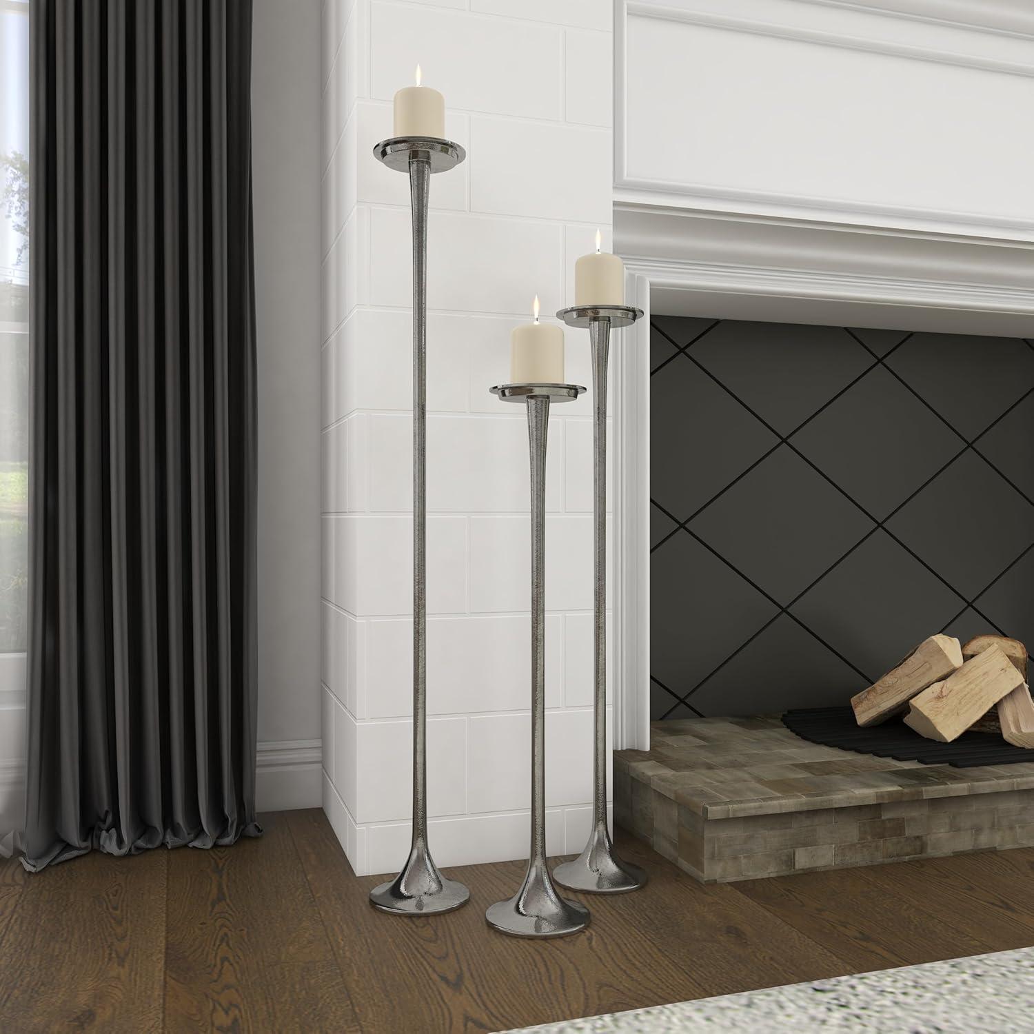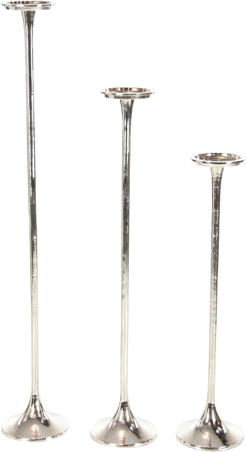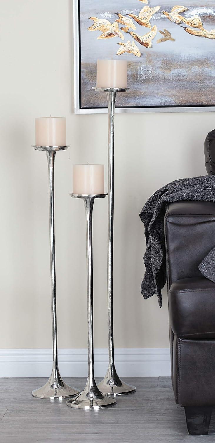 Deco 79 Aluminum Metal Decorative Candle Holder Tall Candle Stand, Set of 3 Candlestick Holder 27″, 32″, 40″H, Silver(Silver)