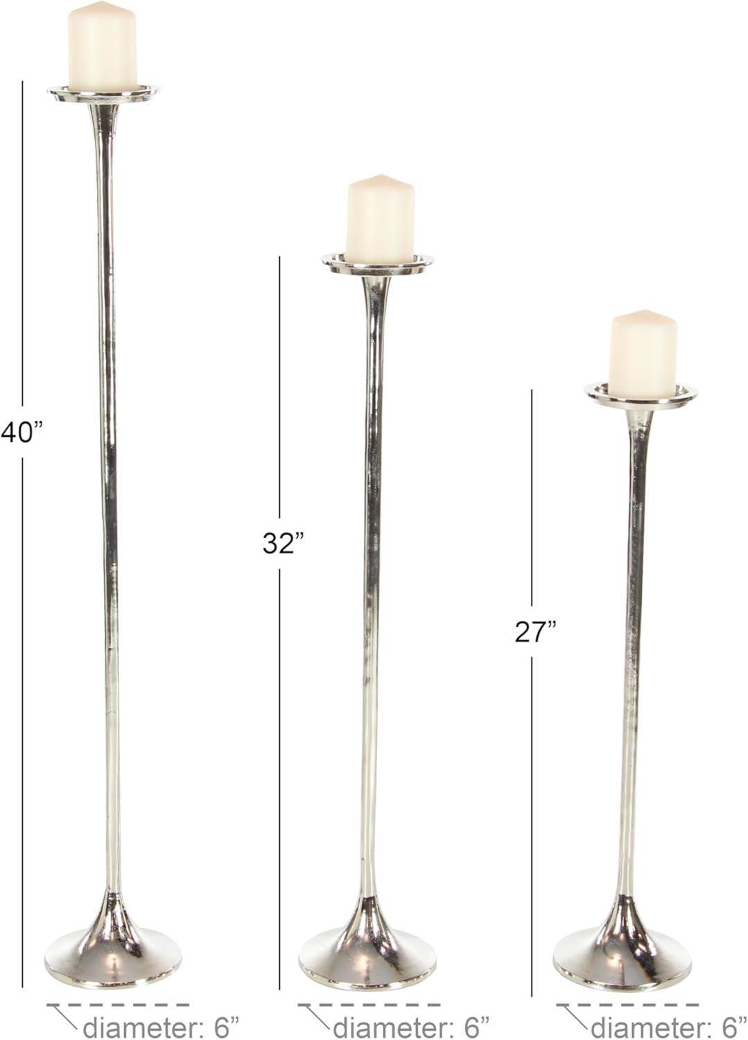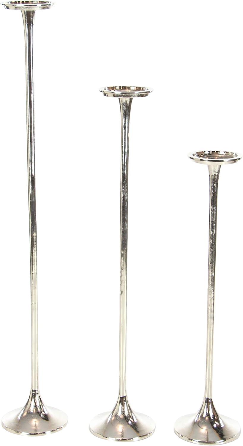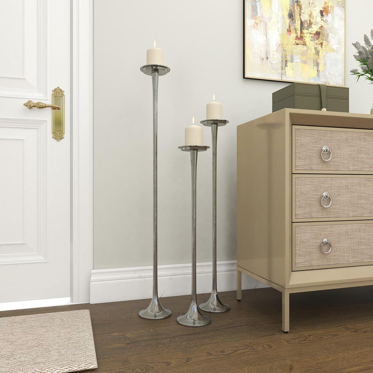Deco 79 Aluminum Metal Decorative Candle Holder Tall Candle Stand, Set of 3 Candlestick Holder 27", 32", 40"H, Silver(Silver)
