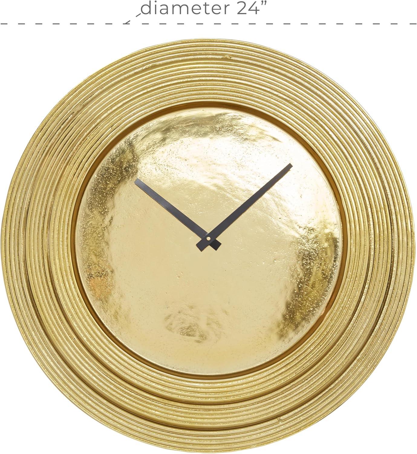Deco 79 Aluminum Metal Decorative Wall Clock Wall Clock for Home, Wall Clock for Room 24" x 2" x 24", Gold(Gold)