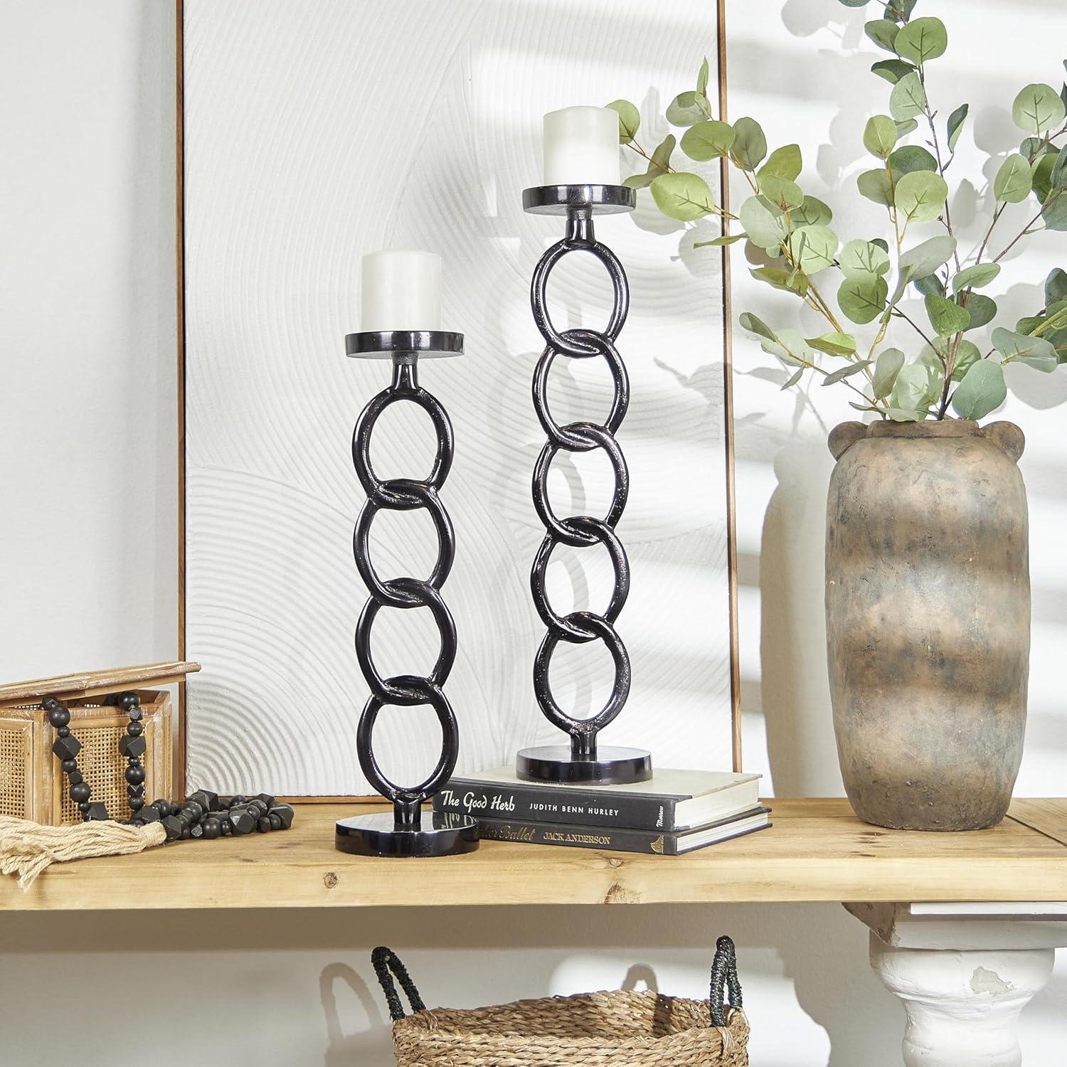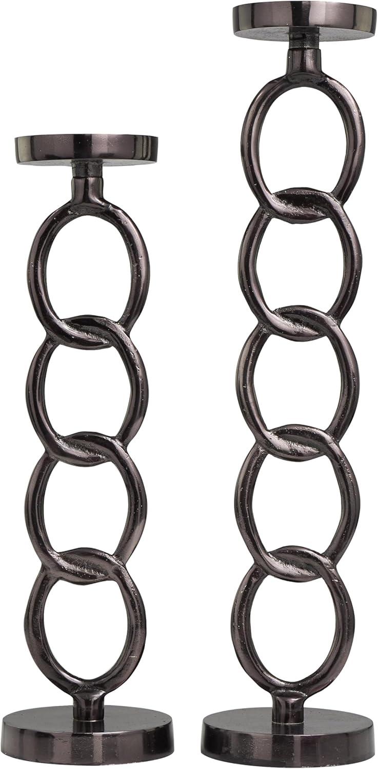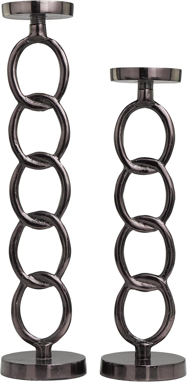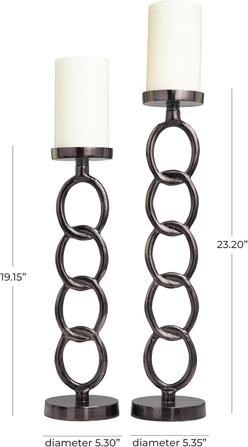 Deco 79 Aluminum Metal Geometric Decorative Candle Holder Chain Link Candle Stand, Set of 2 Candlestick Holder 23", 19" H, Dark Gray(Dark Gray)