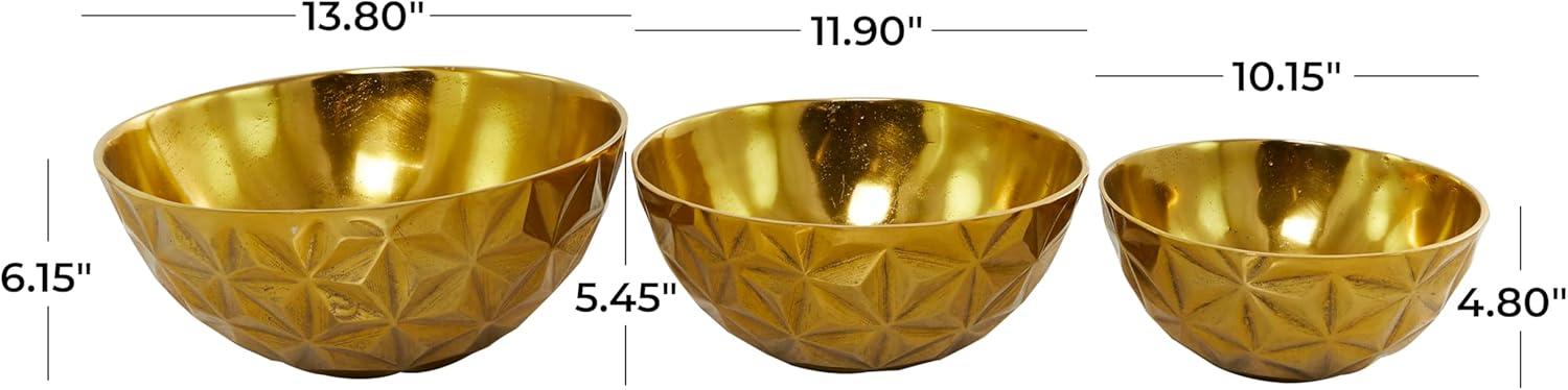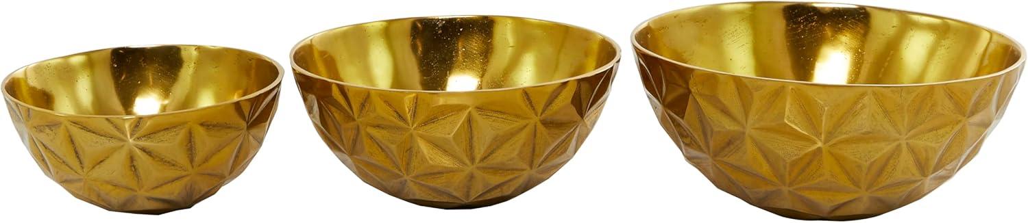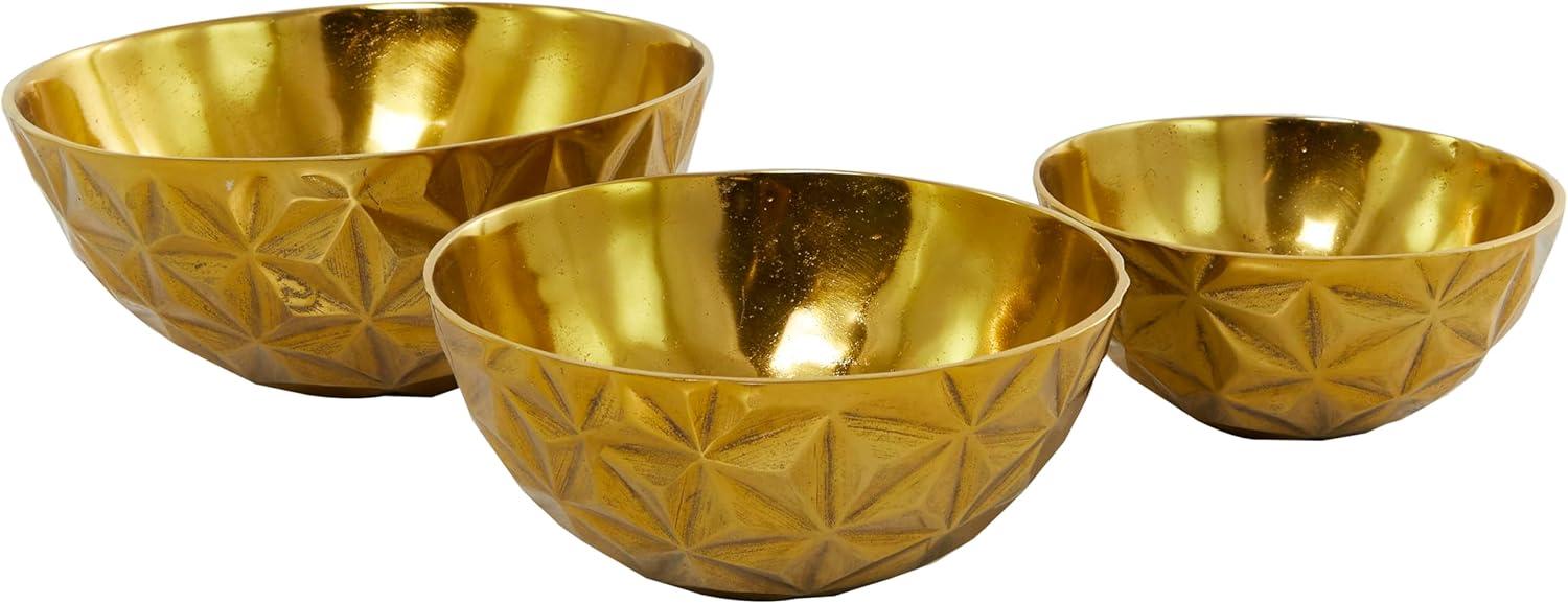 Deco 79 Aluminum Metal Large Decorative Bowl Faceted Catch All for Entryway, Set of 3 Decorative Fruit Bowl 14", 12", 10"W, Gold