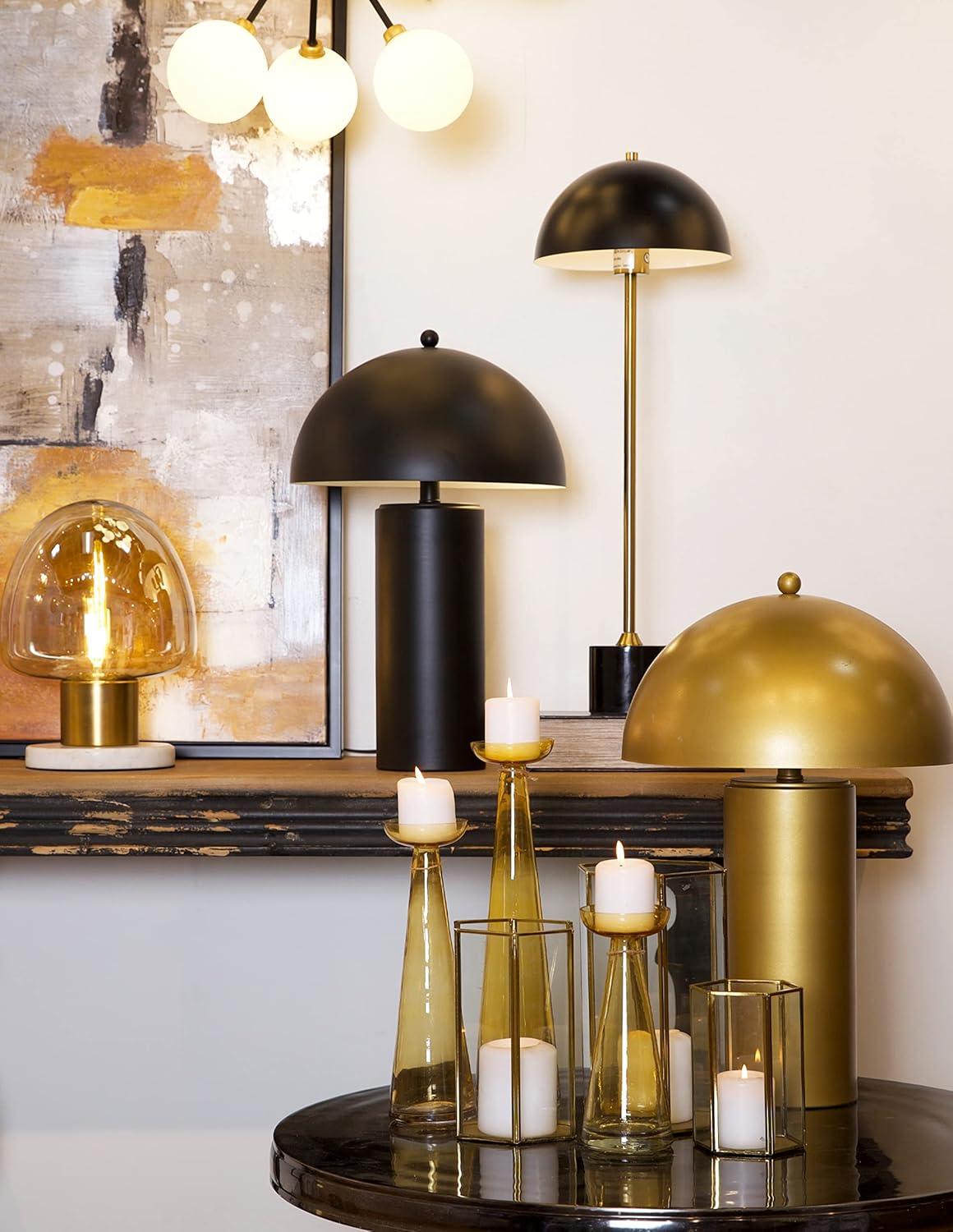 CosmoLiving by Cosmopolitan Metal Geometric Wide Diamond Patterned Hexagon Candle Lantern with Clear Glass, Set of 3 8″, 7″, 6″ H, Gold