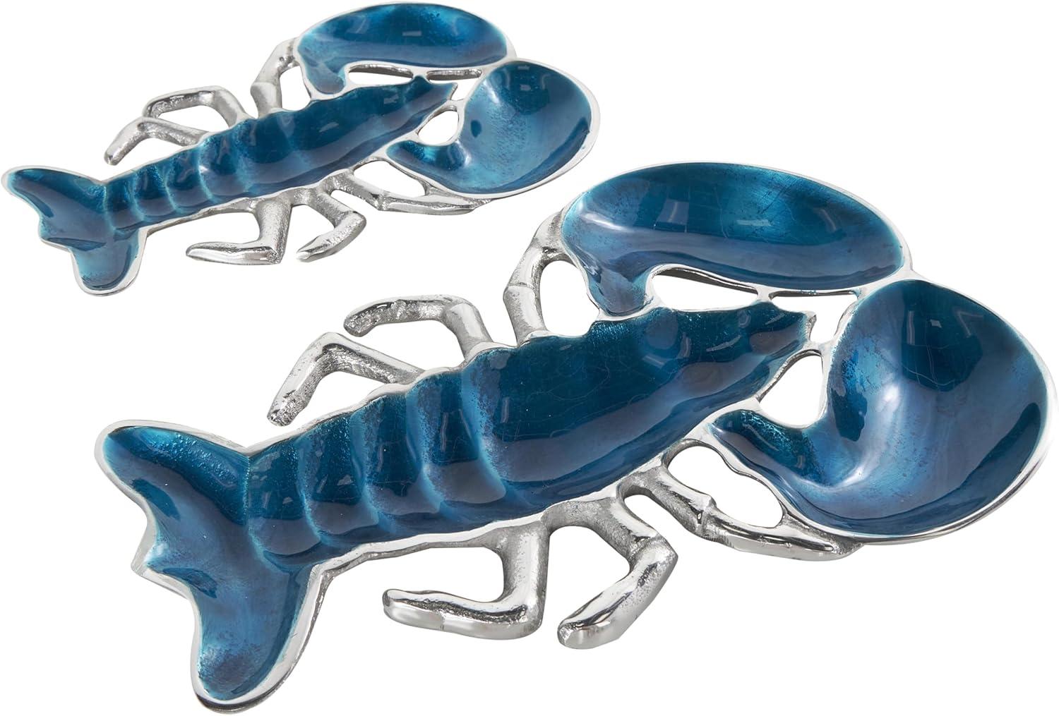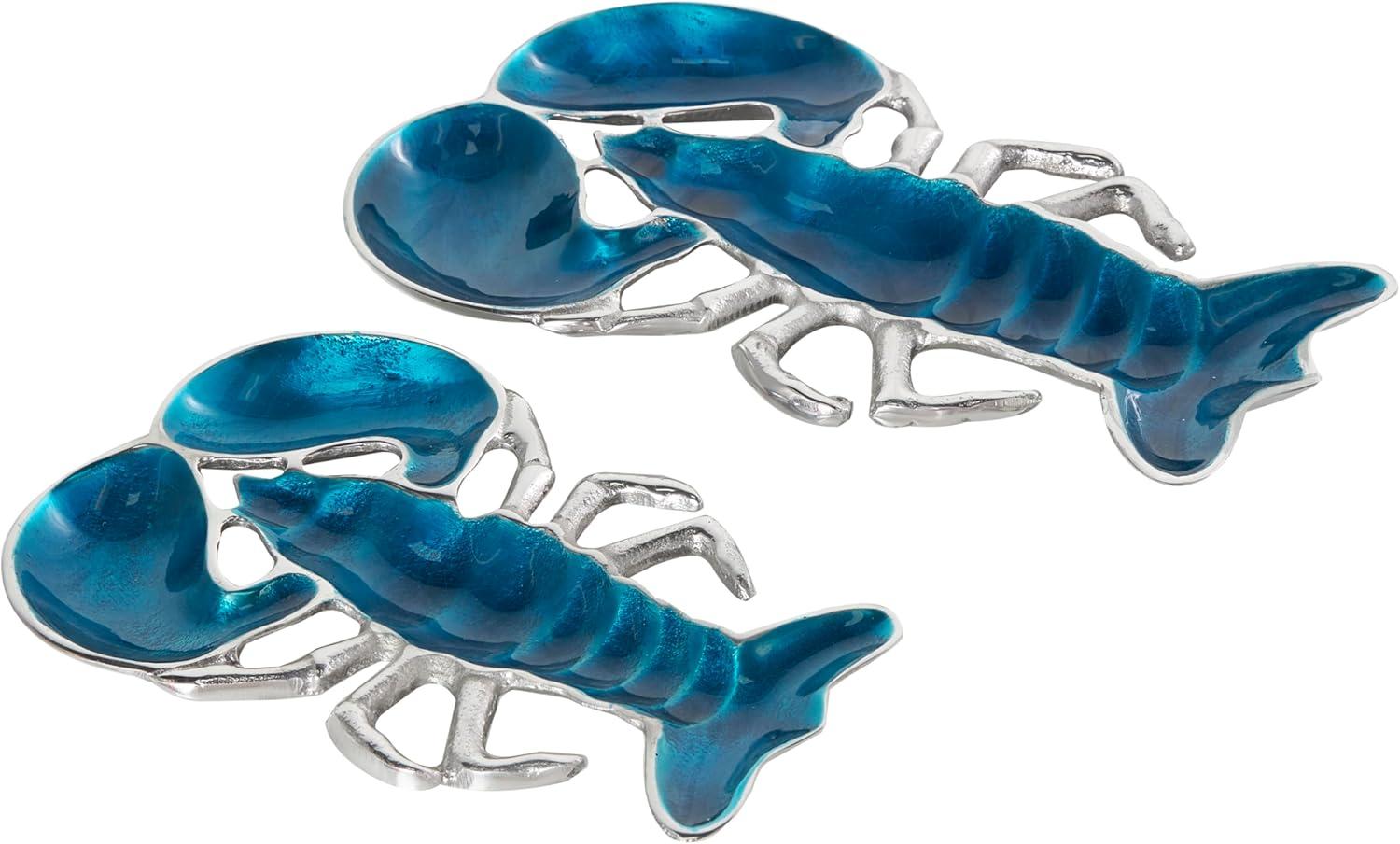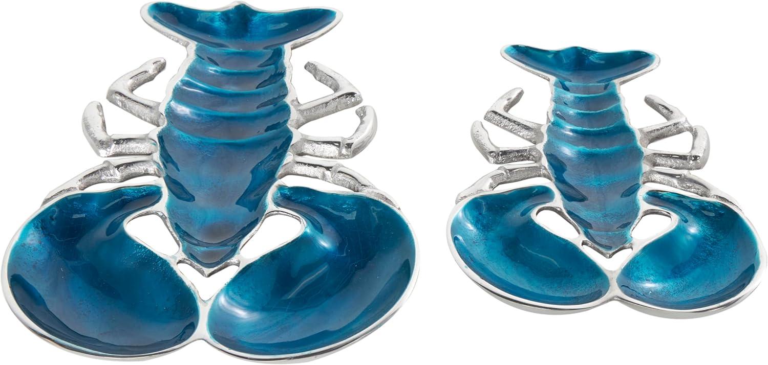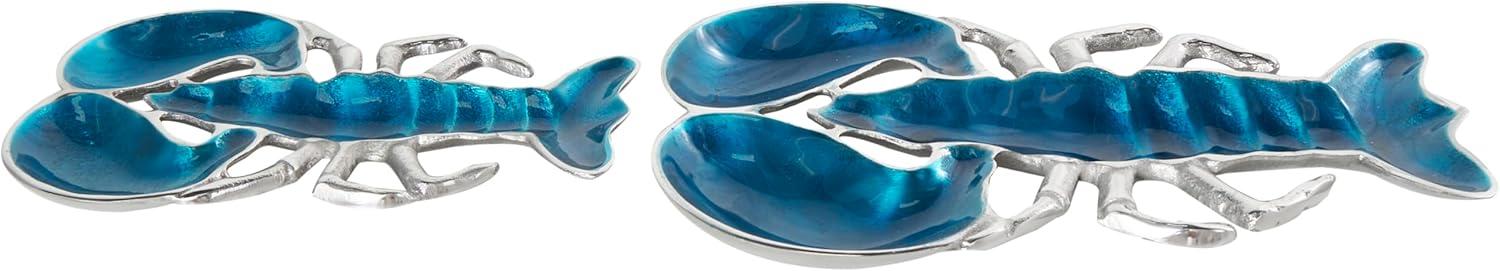 Deco 79 Aluminum Metal Lobster Living Room Decor Tray Enameled Ottoman Tray with Silver Metal Exterior, Set of 2 Serving Tray 11″, 9″ W, Teal(Blue)