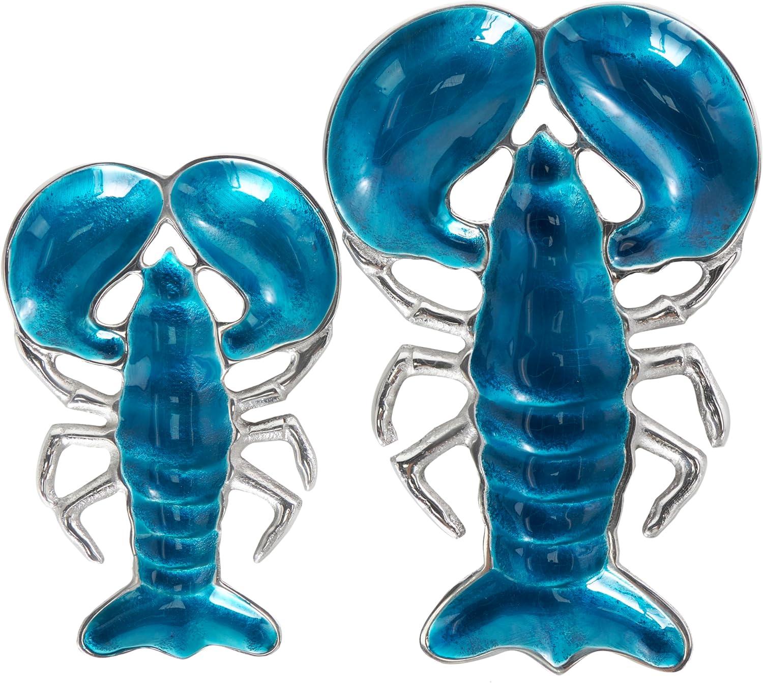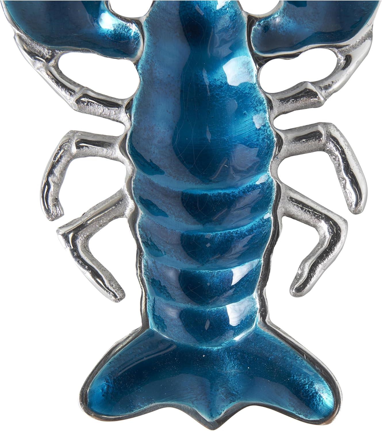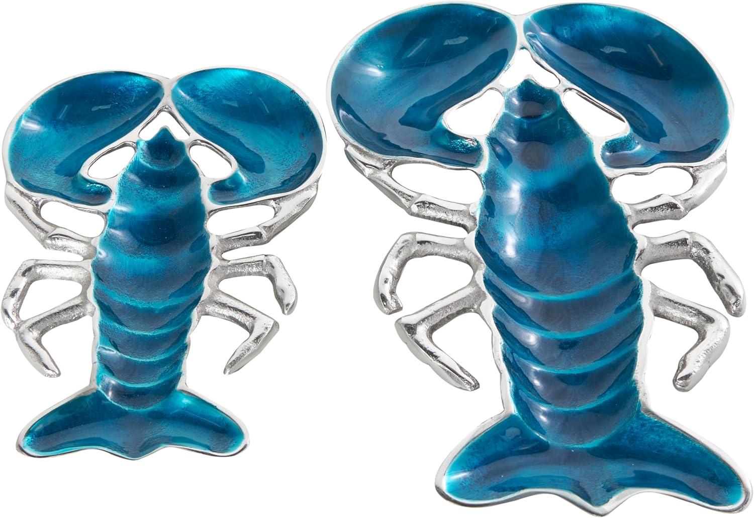 Deco 79 Aluminum Metal Lobster Living Room Decor Tray Enameled Ottoman Tray with Silver Metal Exterior, Set of 2 Serving Tray 11″, 9″ W, Teal(Blue)