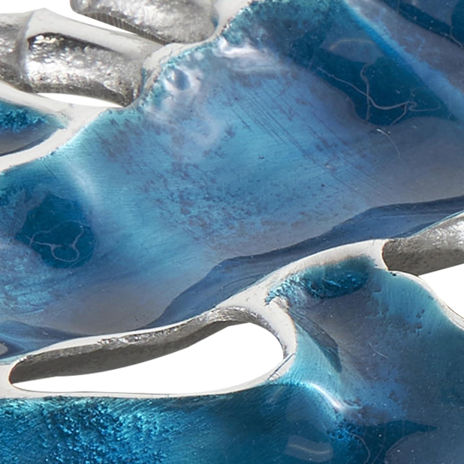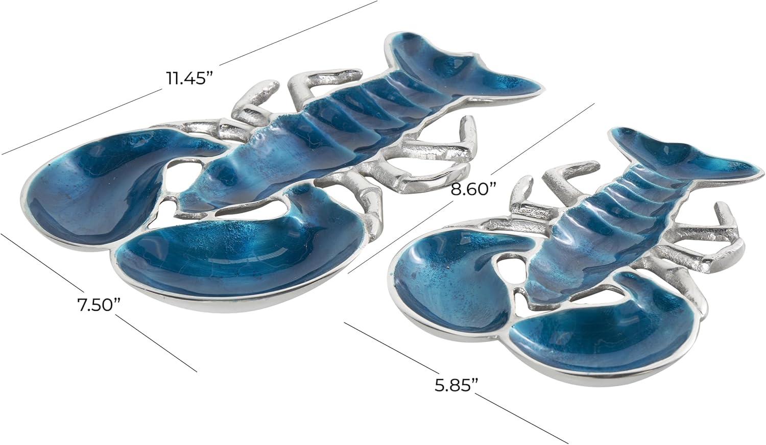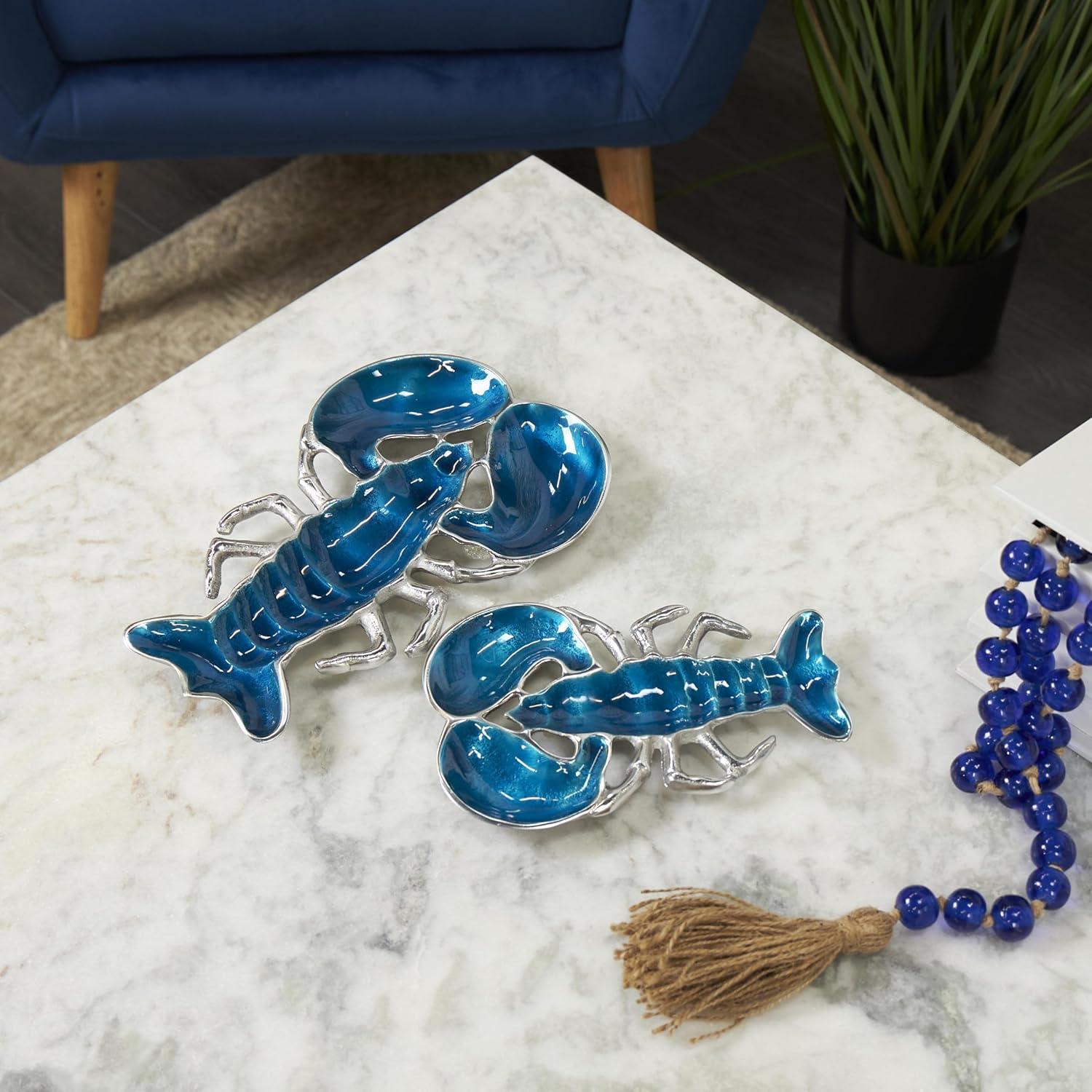 Deco 79 Aluminum Metal Lobster Living Room Decor Tray Enameled Ottoman Tray with Silver Metal Exterior, Set of 2 Serving Tray 11", 9" W, Teal(Blue)