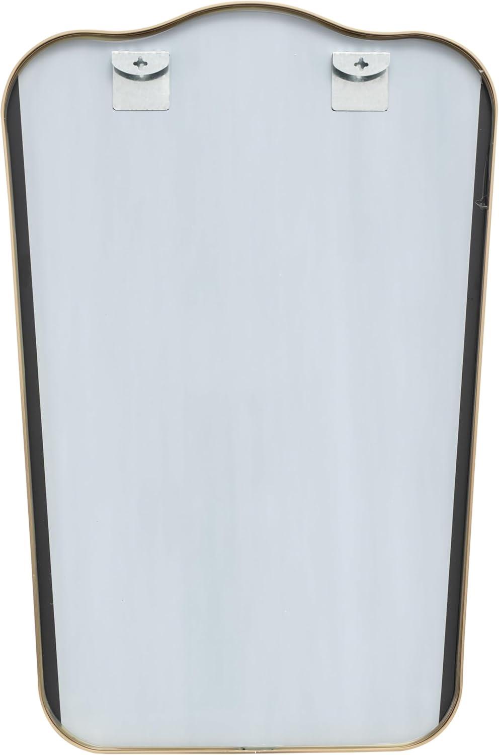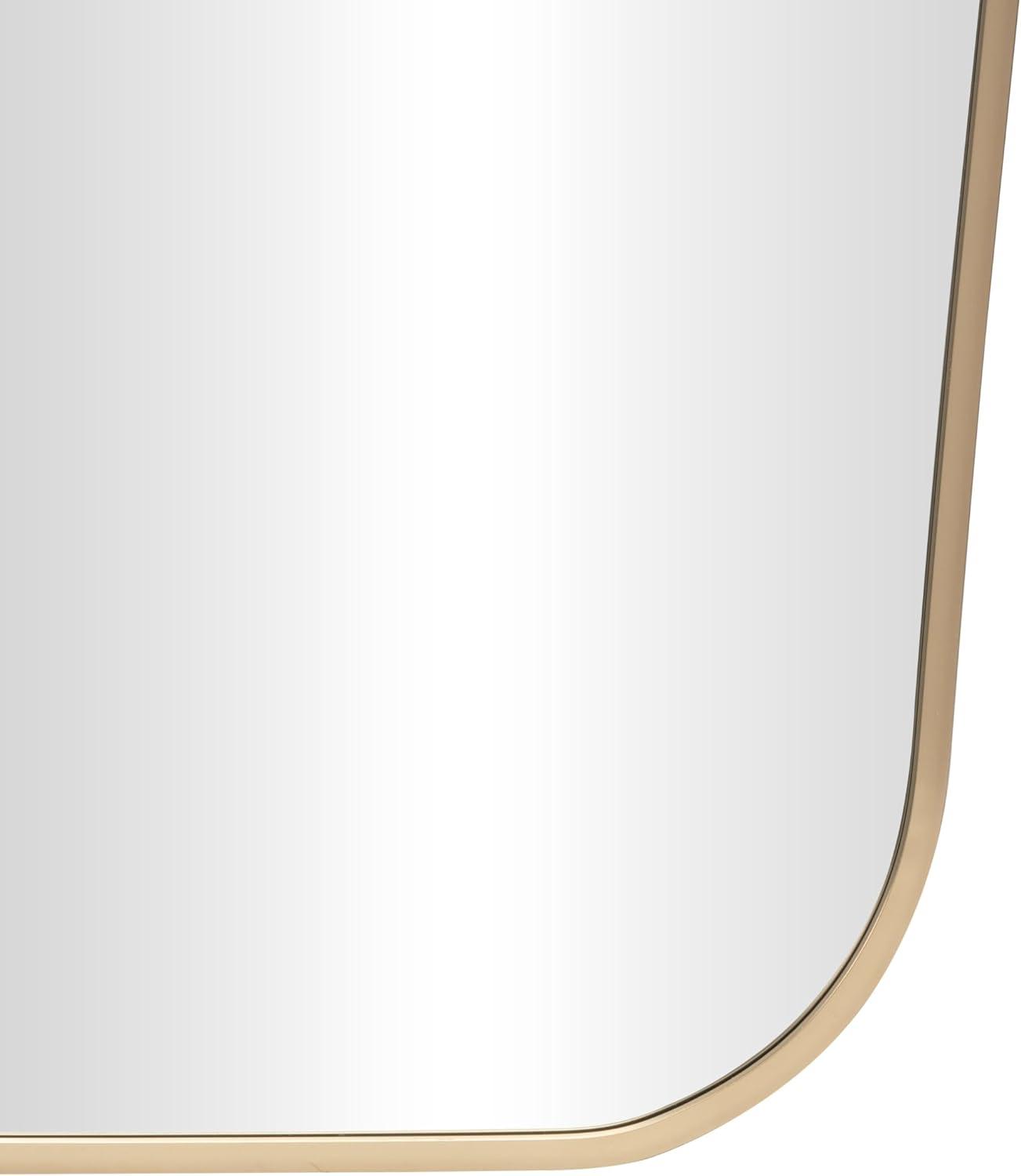 The transitional accent wall mirror is expertly crafted with the beveled mirror encased by an aluminum molded frame that is painted gold. This brushed gold mirror for wall has a rectangular shape that complements various interior styles. Wipe clean with a dry cloth. This gold entryway mirror is perfect for enhancing the decor in hallways or living rooms. This item ships in 1 carton. Can be hung vertically using the holes; nails and screws not included. Suitable for indoor and outdoor use. This item ships fully assembled in one piece. Made in Vietnam. This is a single gold colored entryway mirror. Transitional style.