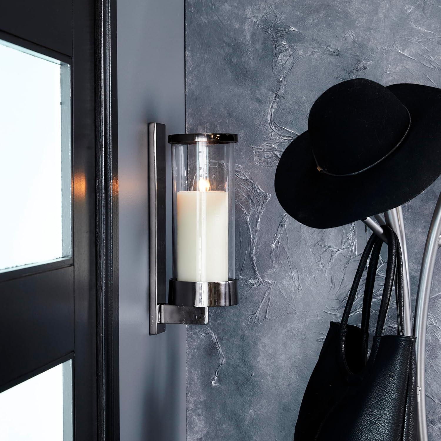 GRAY AND BLACK GLASS FINISH: This candle wall sconce features a gray finish that complements any contemporary style home decor