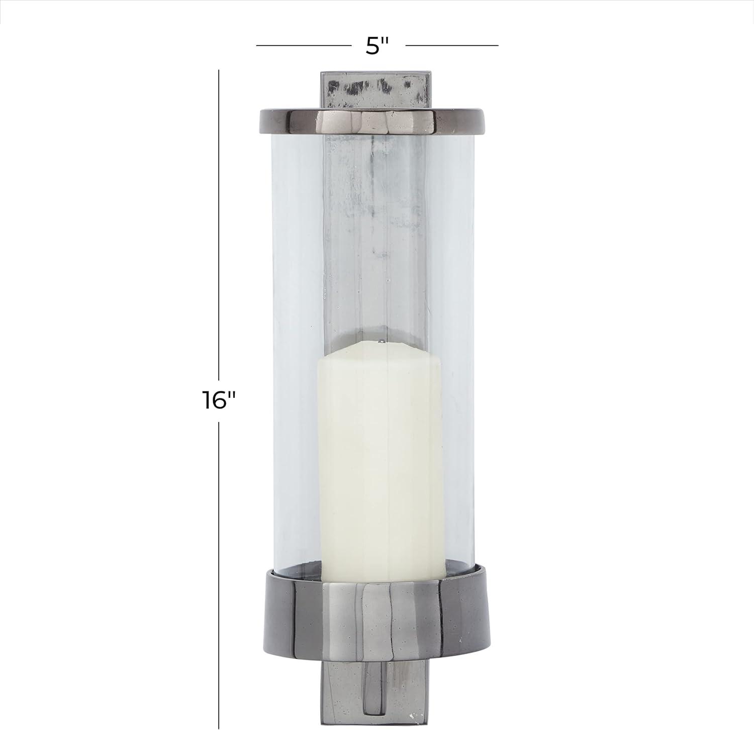 Deco 79 Aluminum Metal Single Candle Wall Sconce, 5" x 7" x 16", Gray(Gray)