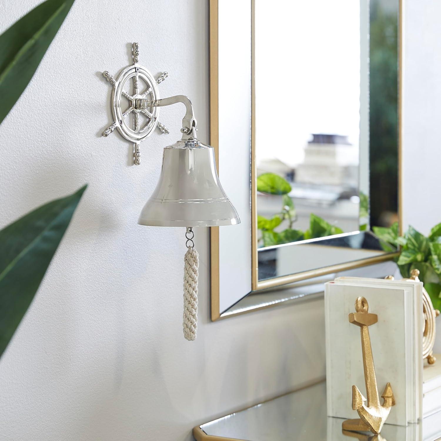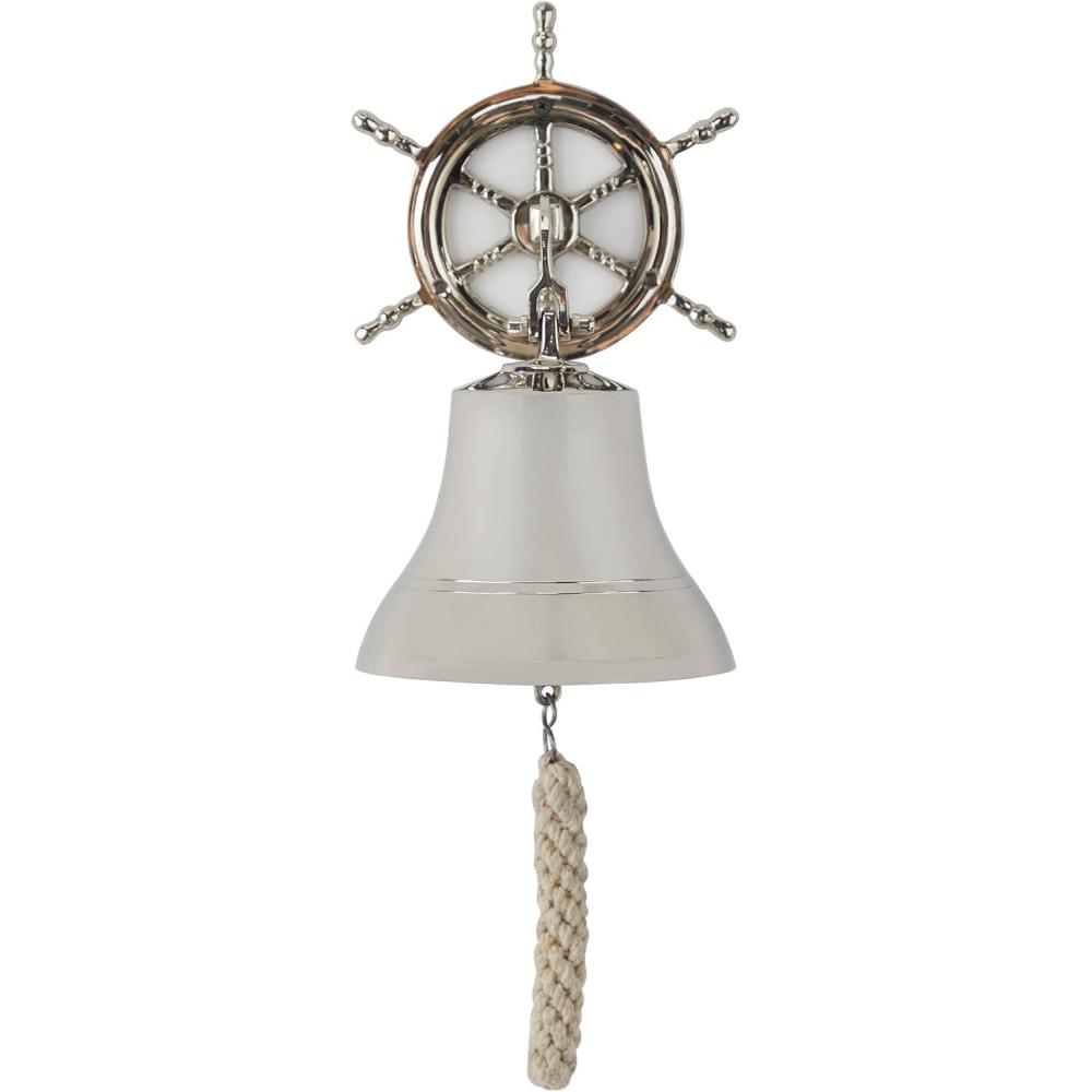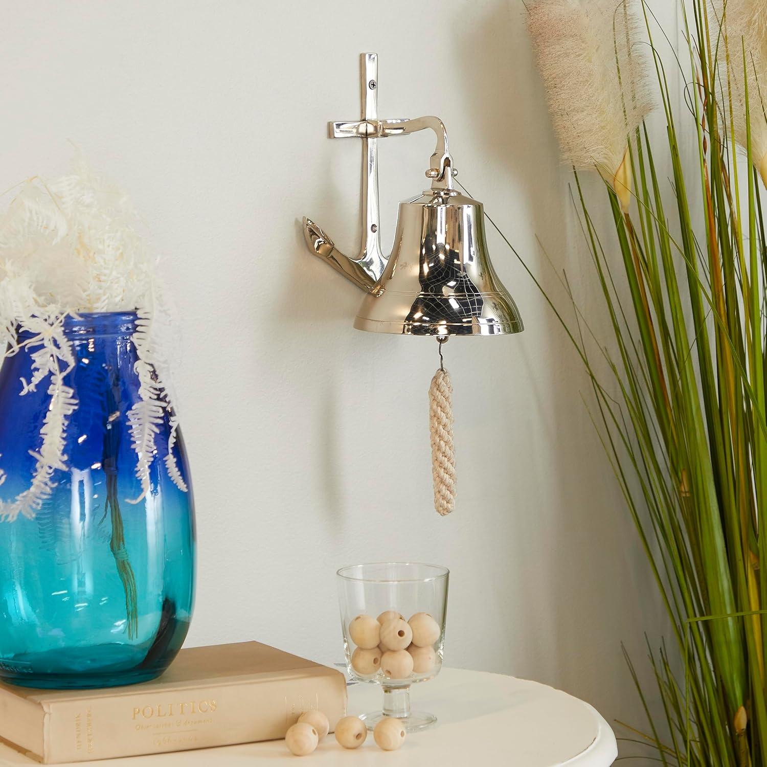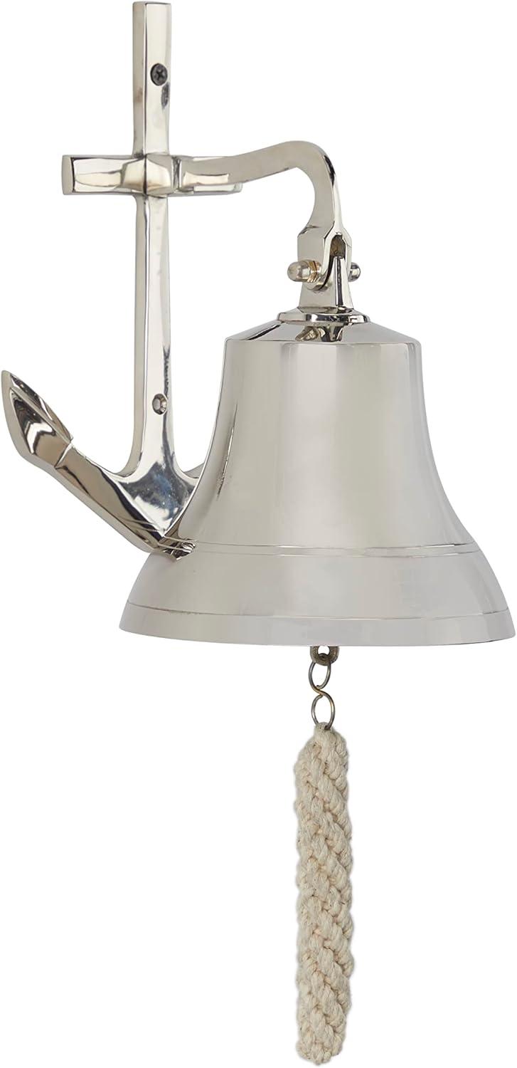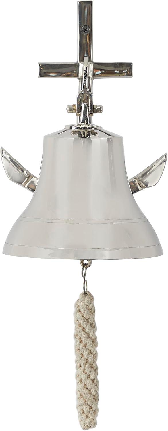 BELL BELL WALL DECOR As a unique feature, this brass wall decor incorporates a ship anchor background frame that adds character, along with a braided rope attached to its clapper
