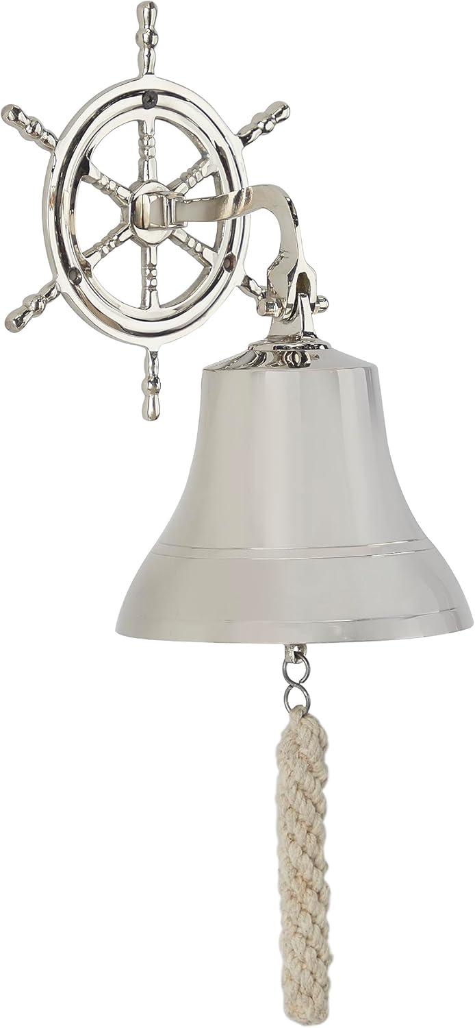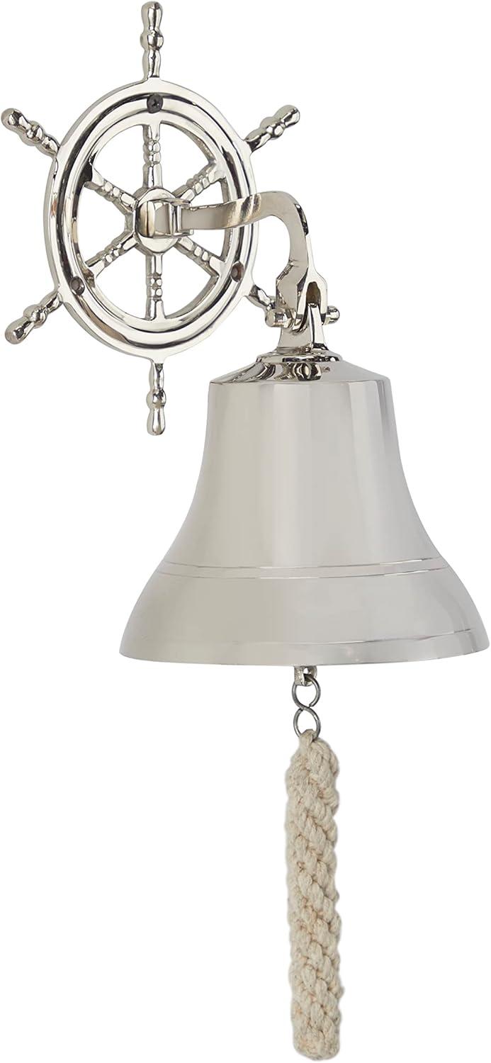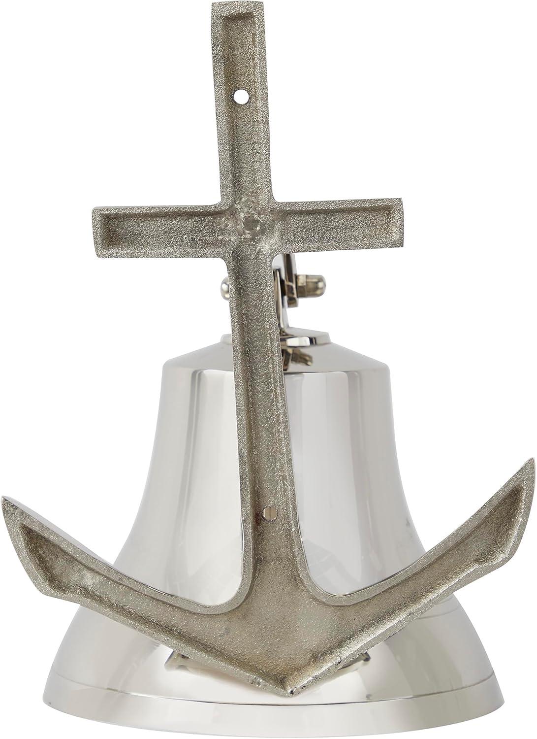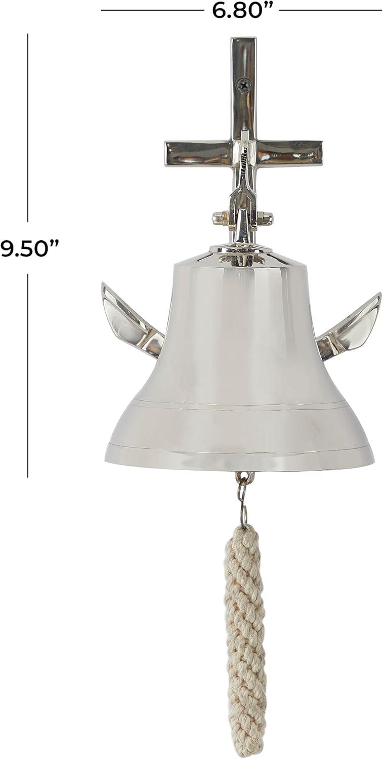 BELL BELL WALL DECOR As a unique feature, this brass wall decor incorporates a ship anchor background frame that adds character, along with a braided rope attached to its clapper