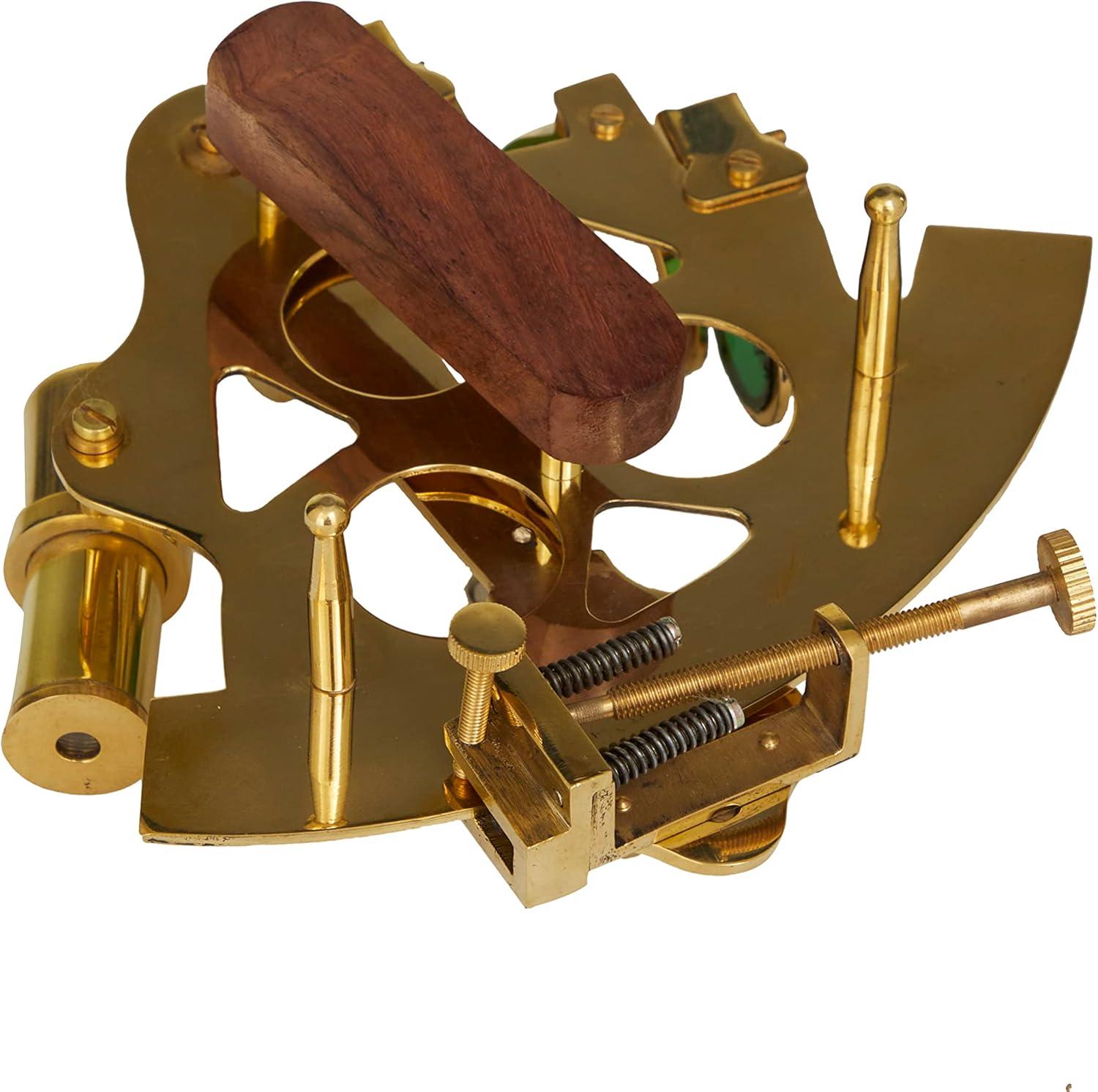 MADE OF BRASS: Nautical sextant and box decor constructed of brass and rosewood materials