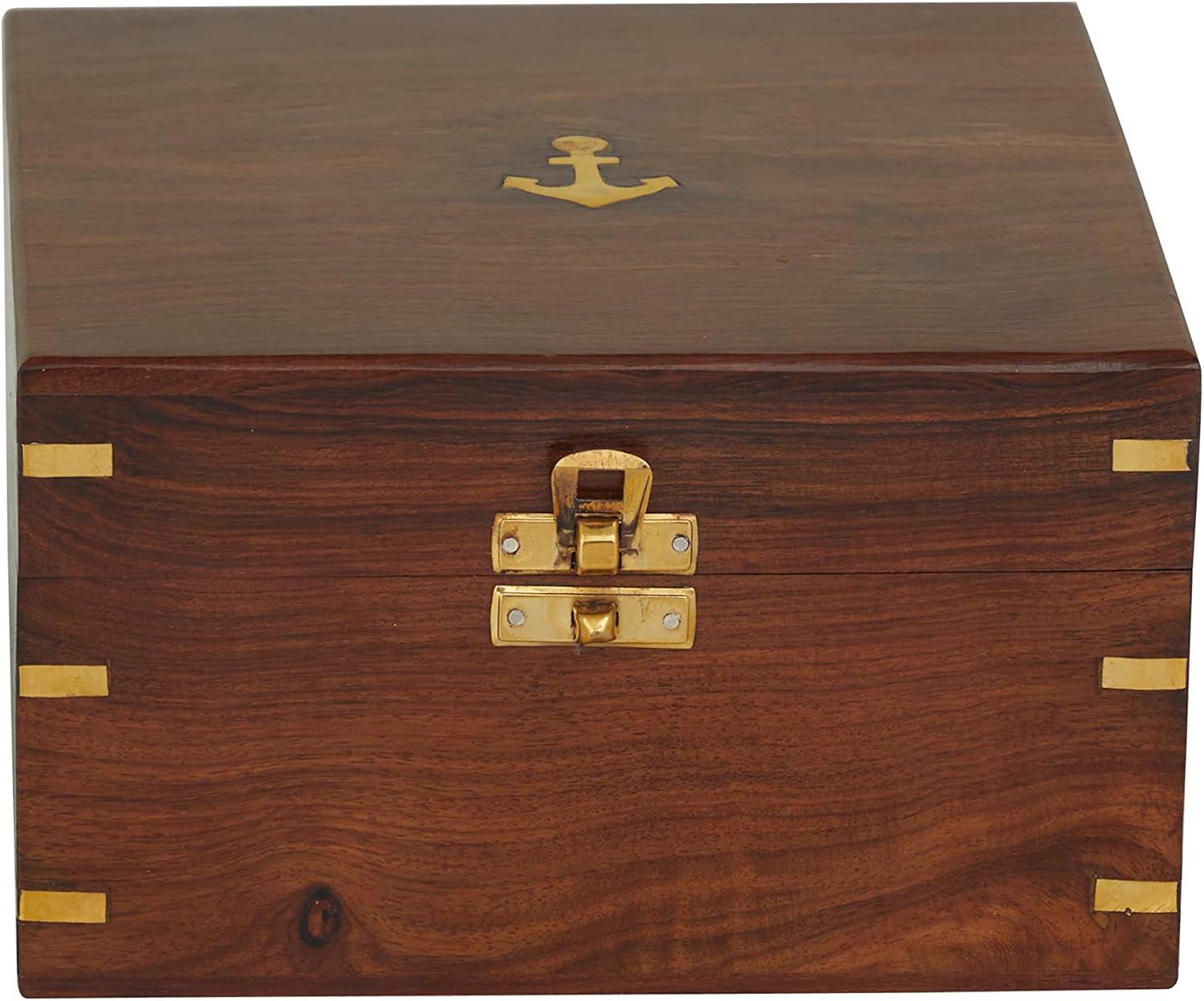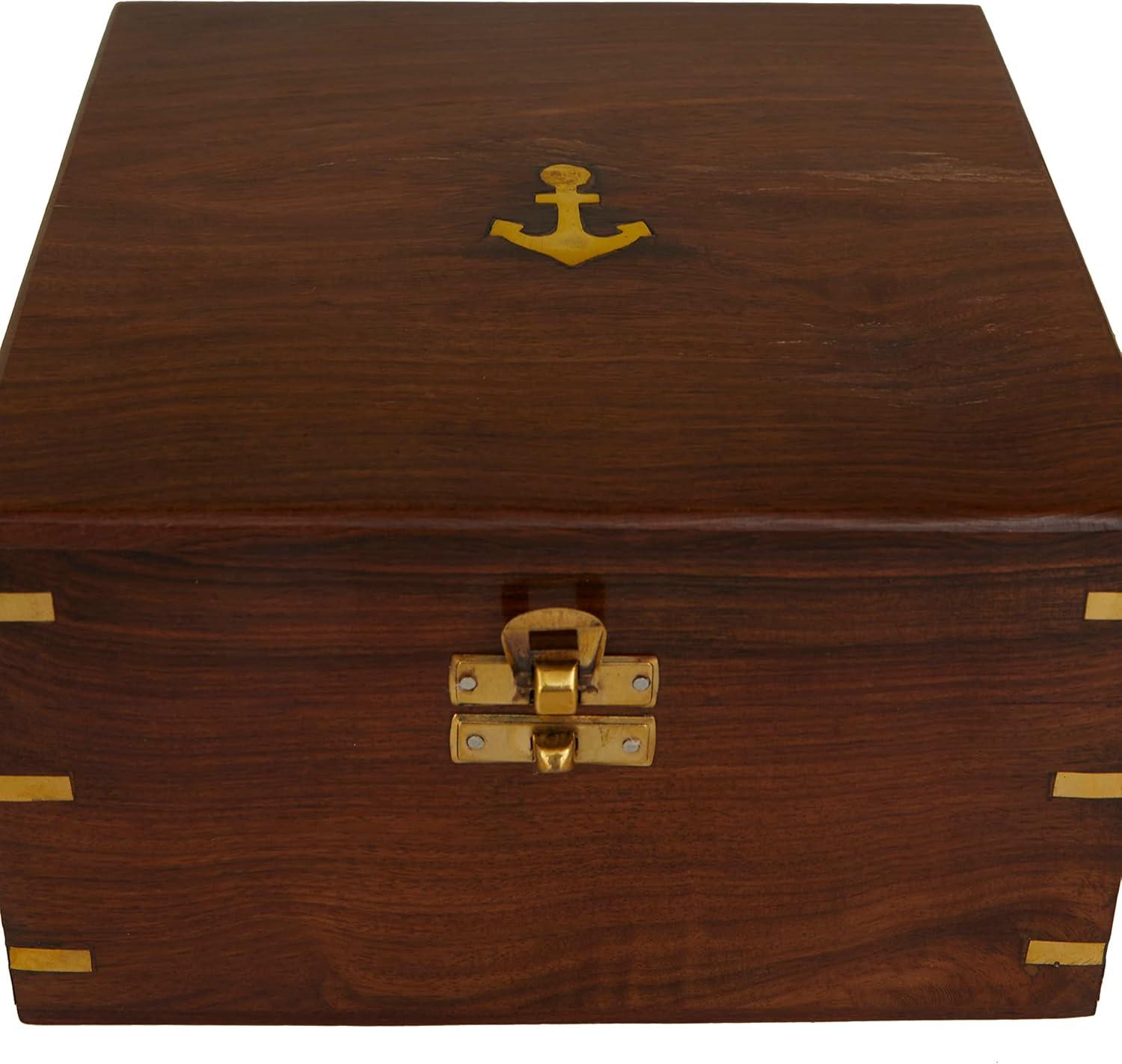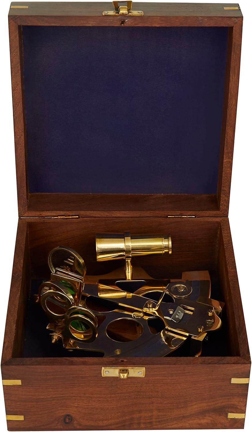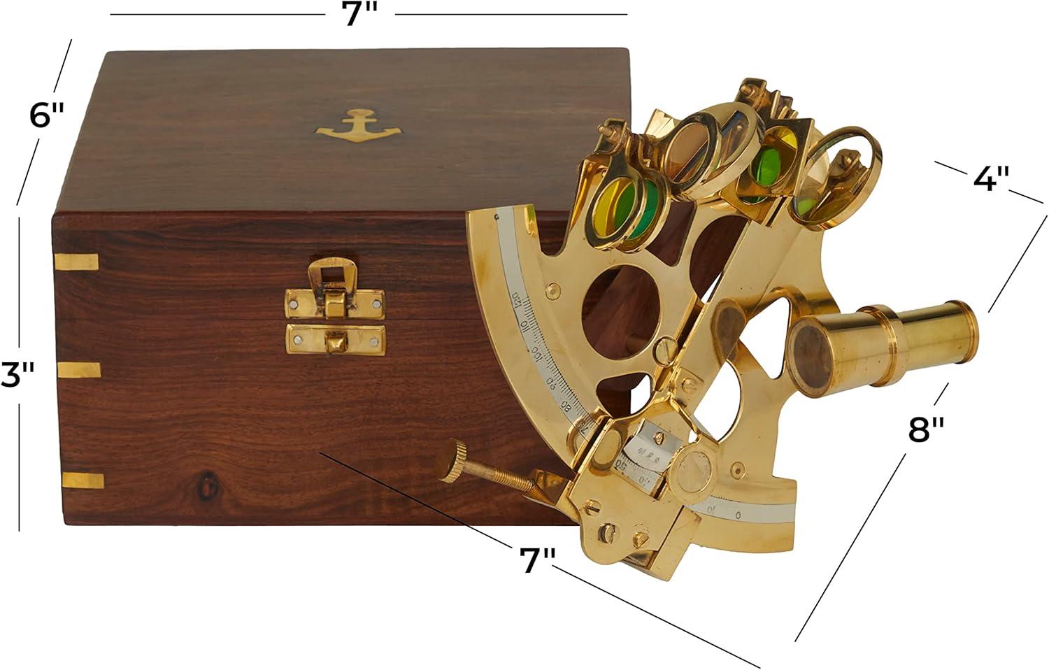 Deco 79 Brass Metal Sextant Compass with Decorative Wood Box, Set of 2 7″ W, 3″ H, Gold(Gold)