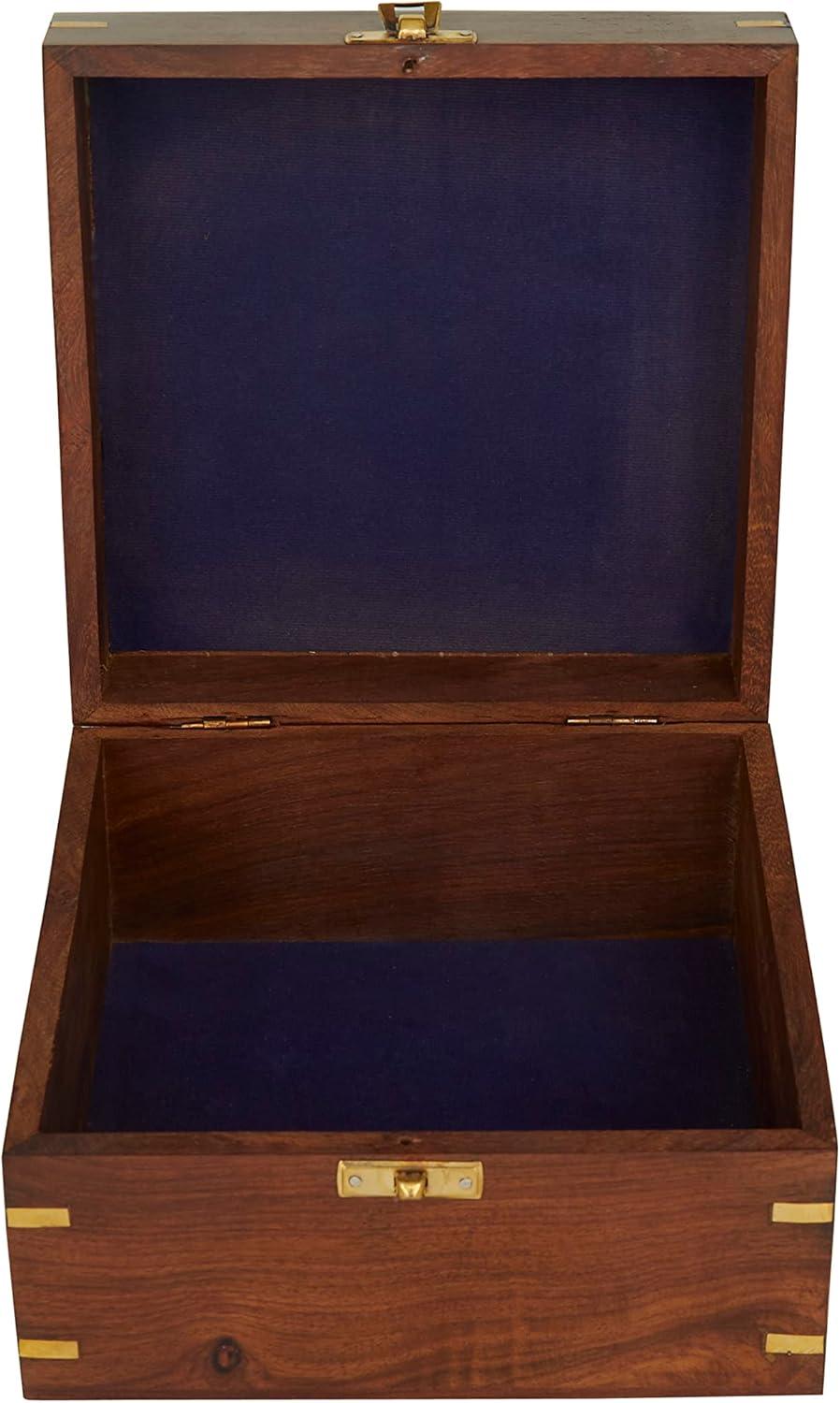 FEATURES SQUARE HEIRLOOM DECOR A lock-and-latch feature flaunts the wooden box for this traditional sextant collection item