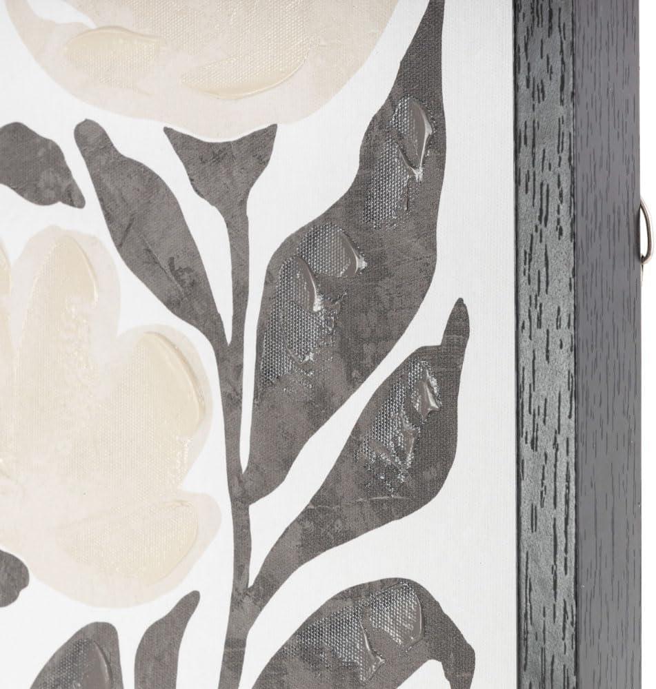 The natural framed canvas art is expertly crafted with acrylic paint meticulously applied to the canvas, which is then elegantly enclosed within a sturdy MDF frame and supported by an MDF backing. The textured white wall framed art has a rectangular shape with a floral painting that complements modern decor. Wipe clean with a dry cloth. This floral canvas wall art can be mounted on the wall to elevate the aesthetic appeal of your living room, bedroom, or office. This item ships in 1 carton. Can be hung vertically using the d-rings; nails and screws not included. Suitable for indoor use only. This item ships fully assembled in one piece. This is a single white colored canvas wall art. Natural style.