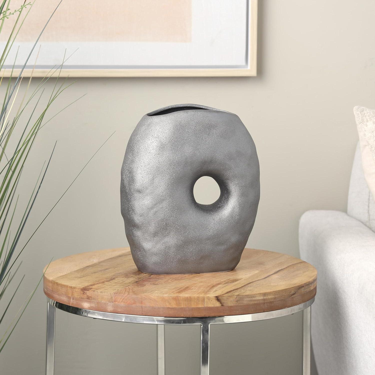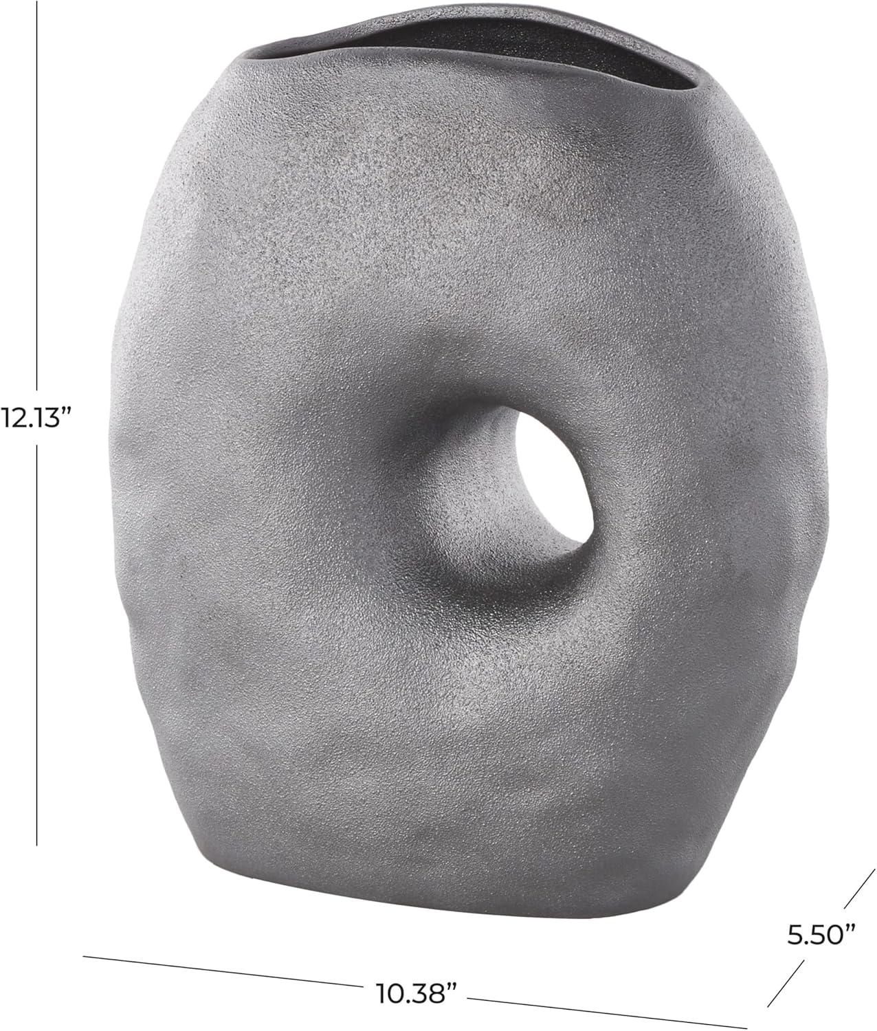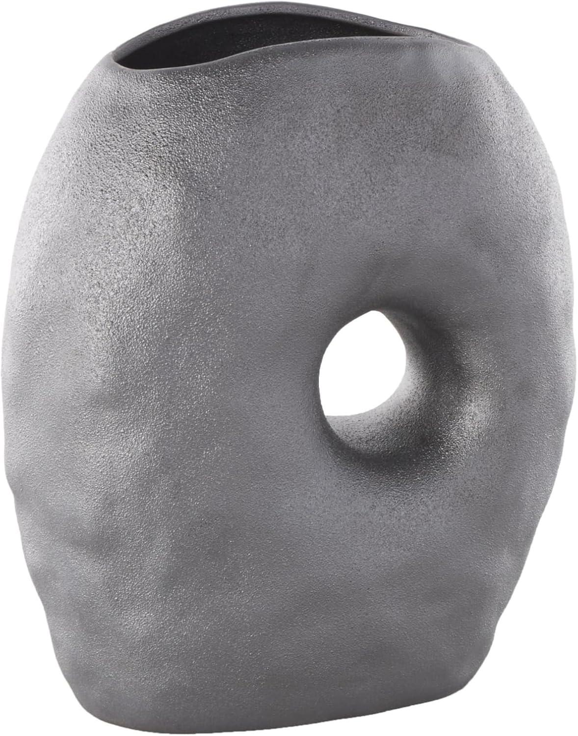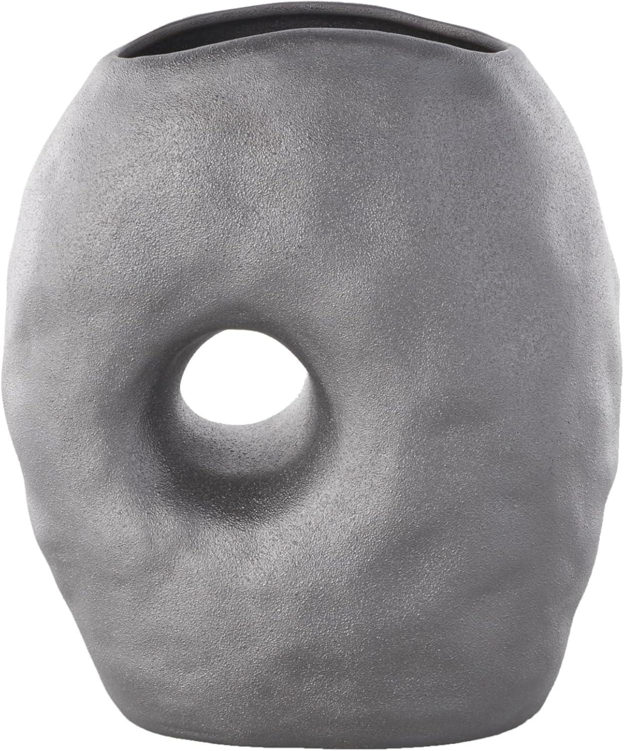 ABSTRACT ROUND VASE FOR HOME DÉCOR: Featuring a unique cutout center that adds depth and interest of this ceramic vase