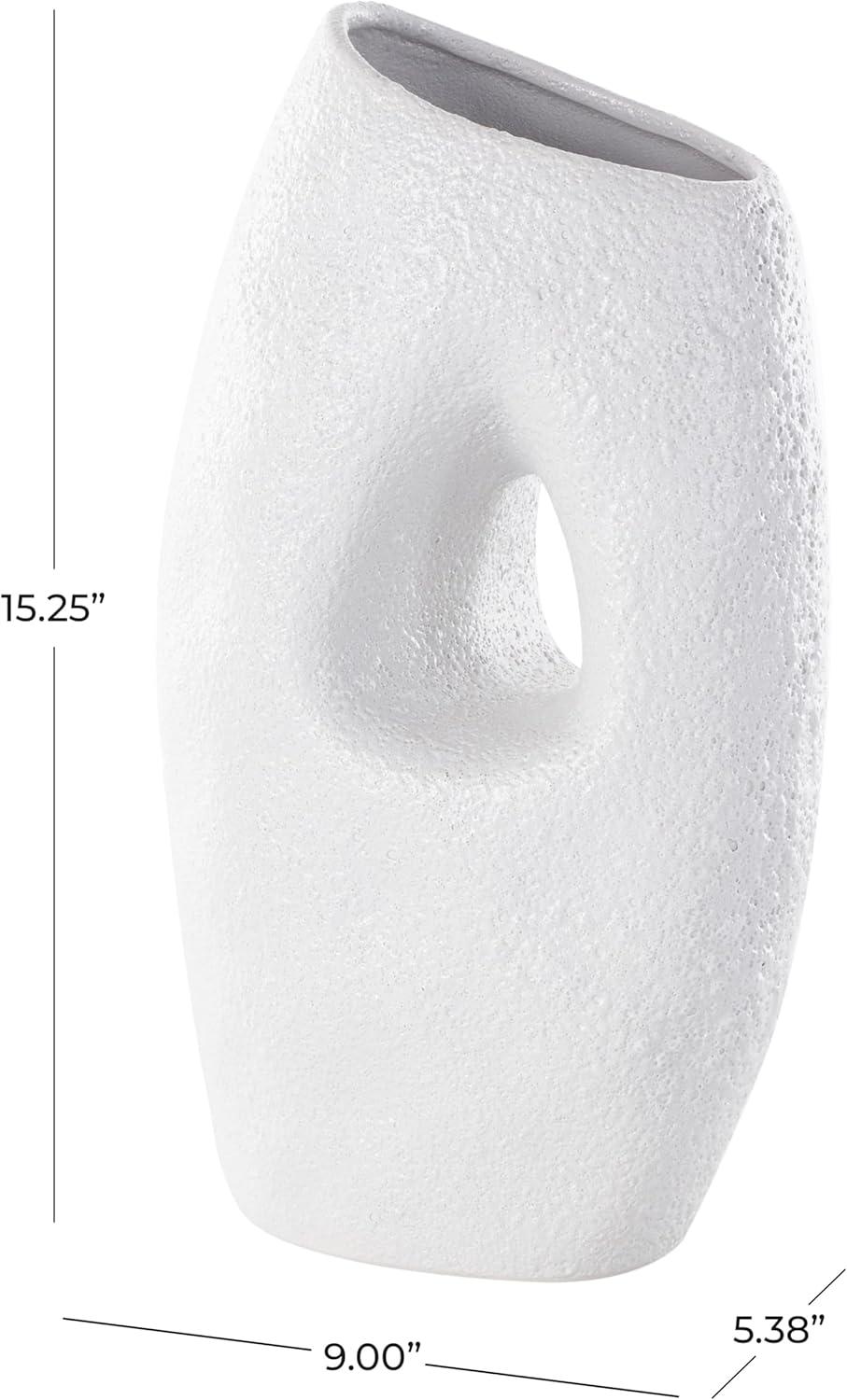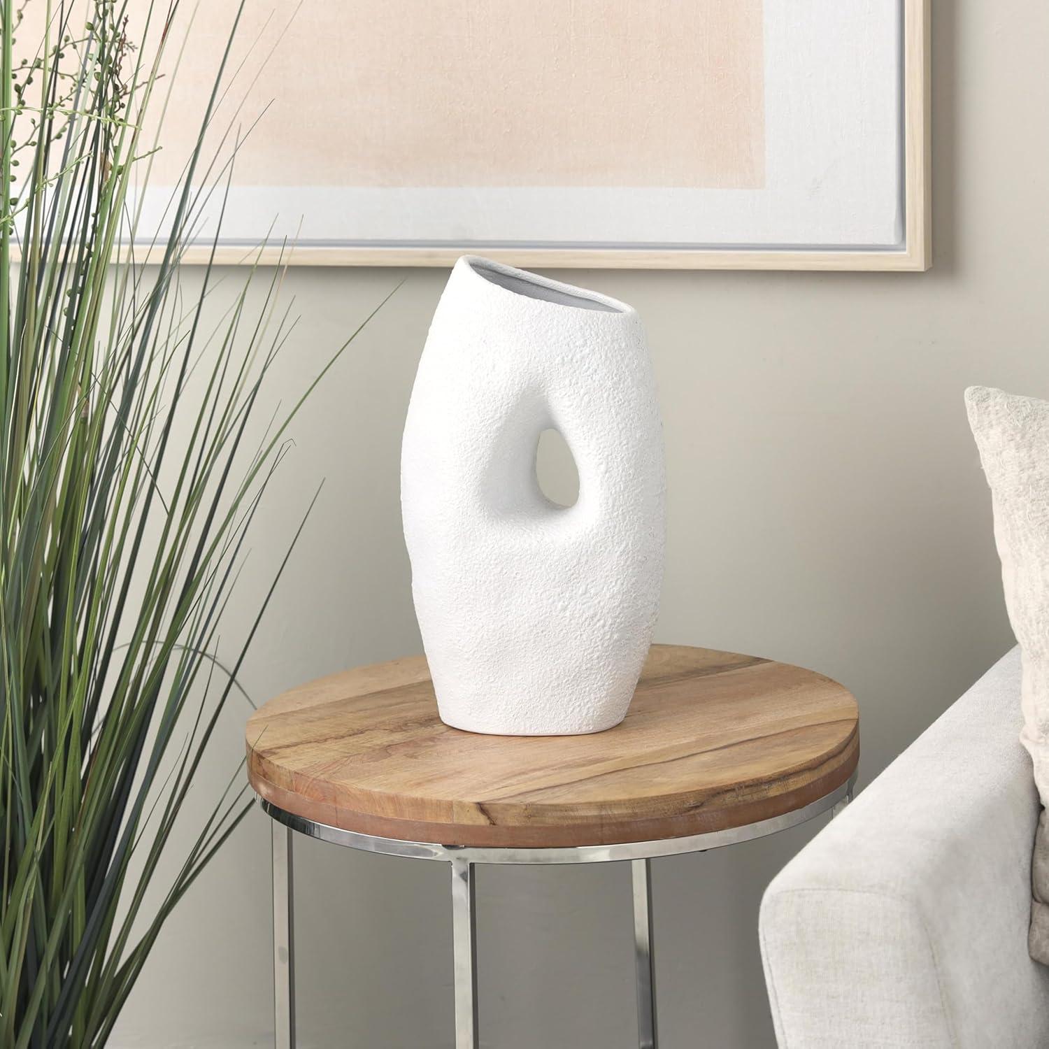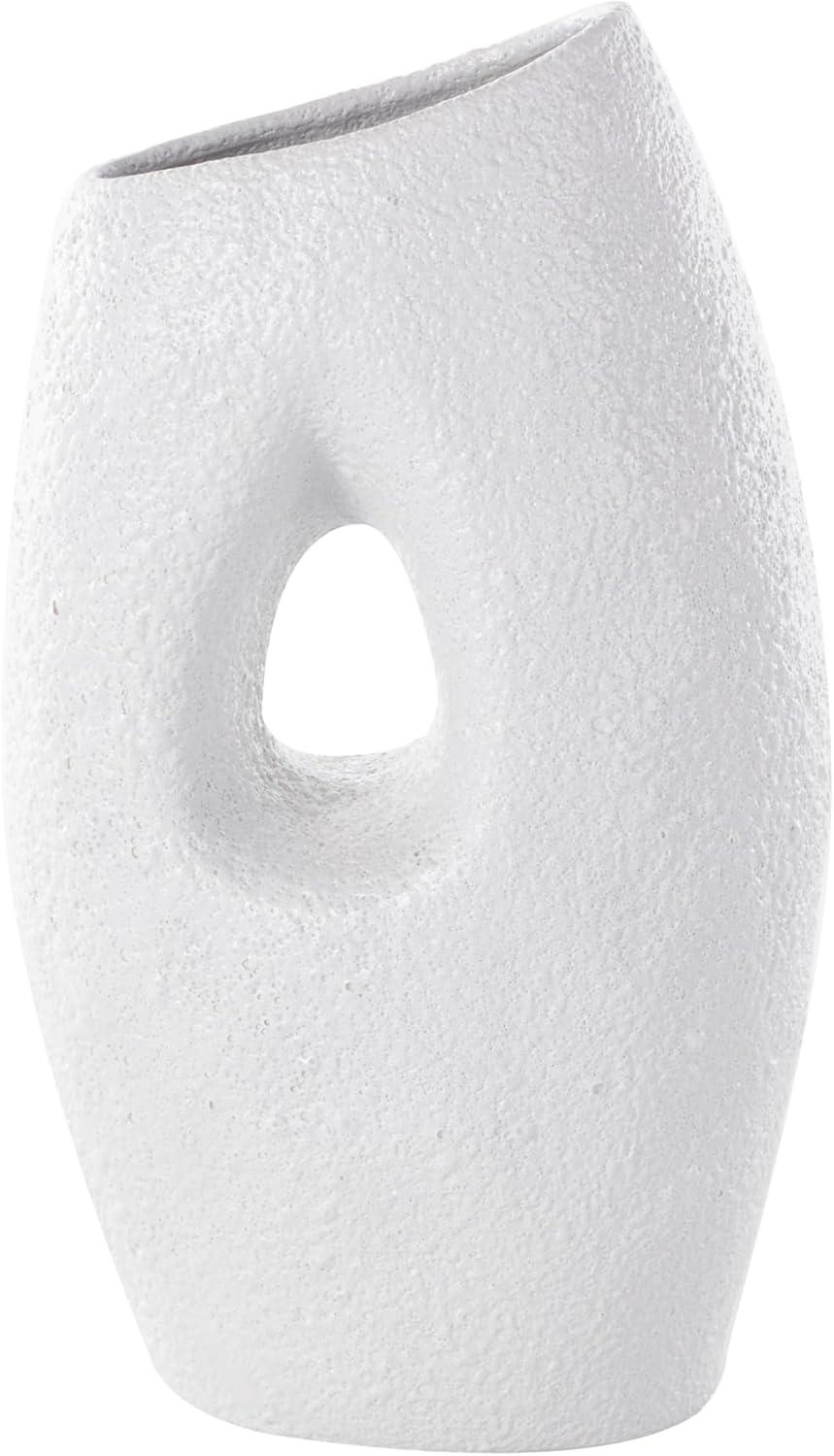 ABSTRACT ROUND VASE FOR HOME DÉCOR: Featuring a unique cutout center that adds depth and interest of this ceramic vase