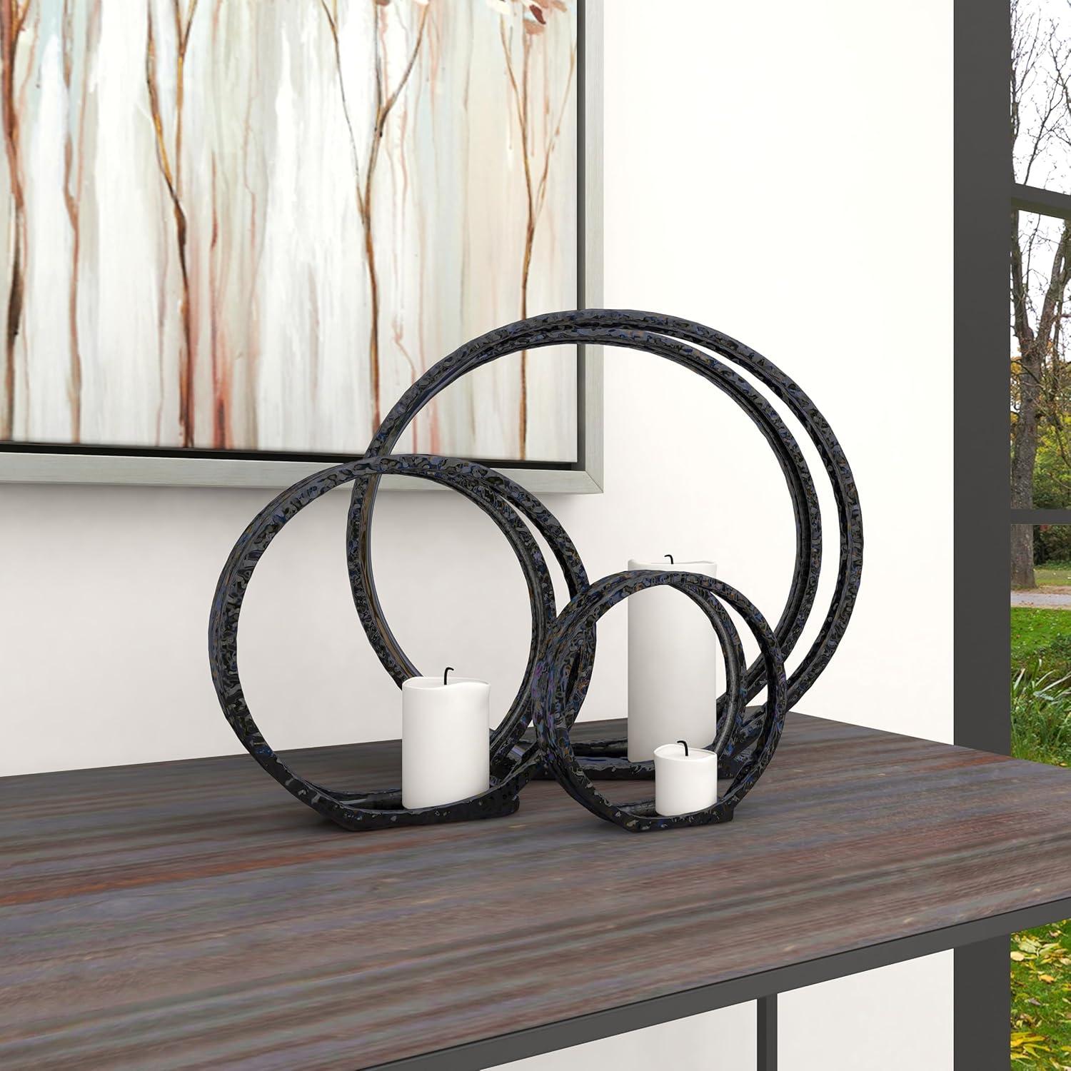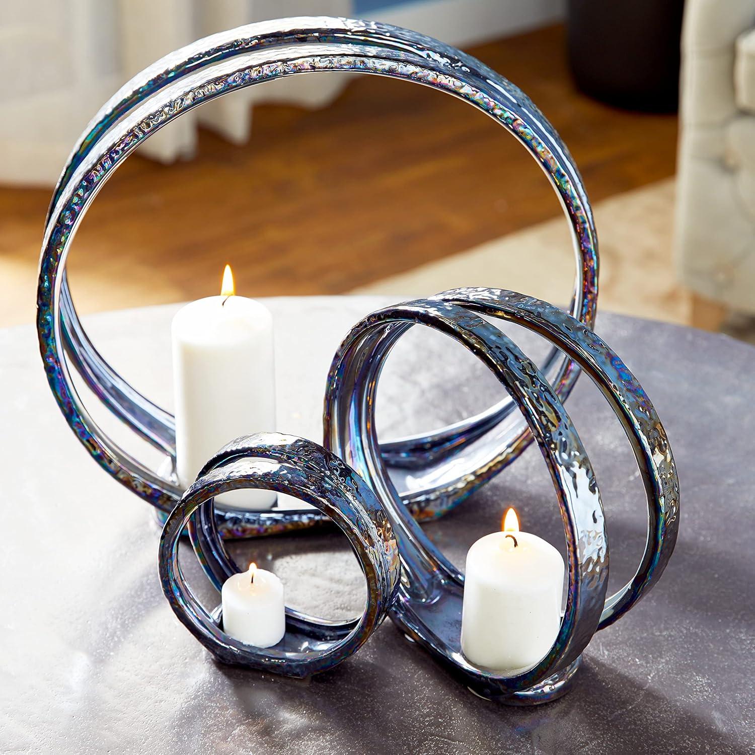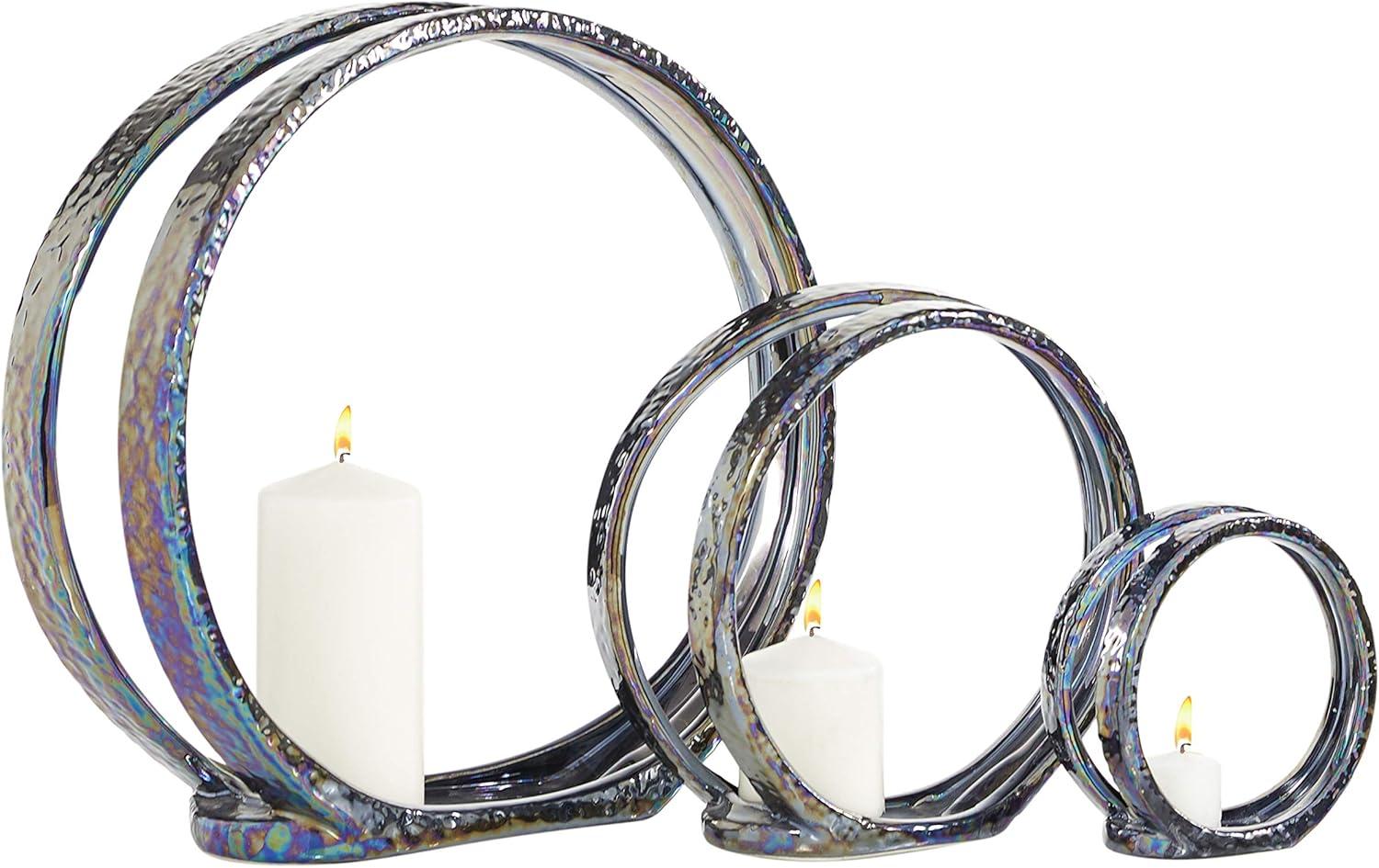 image:imageDeco 79 Ceramic Decorative Candle Holder Pillar 3 Plate Candle Stand Set of 3 Candlestick Holder 13 9 6H Silver