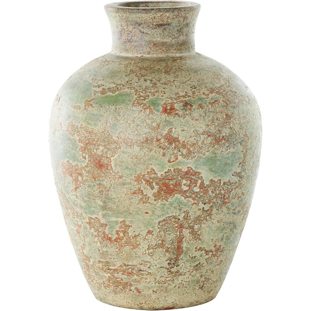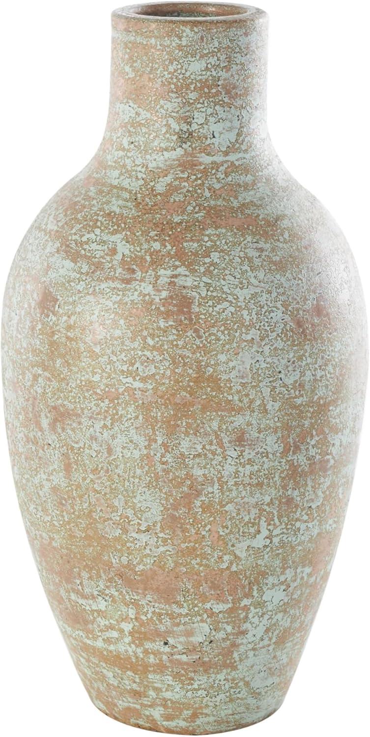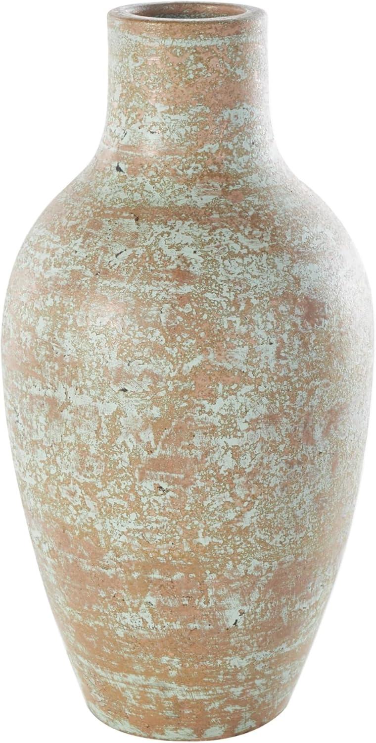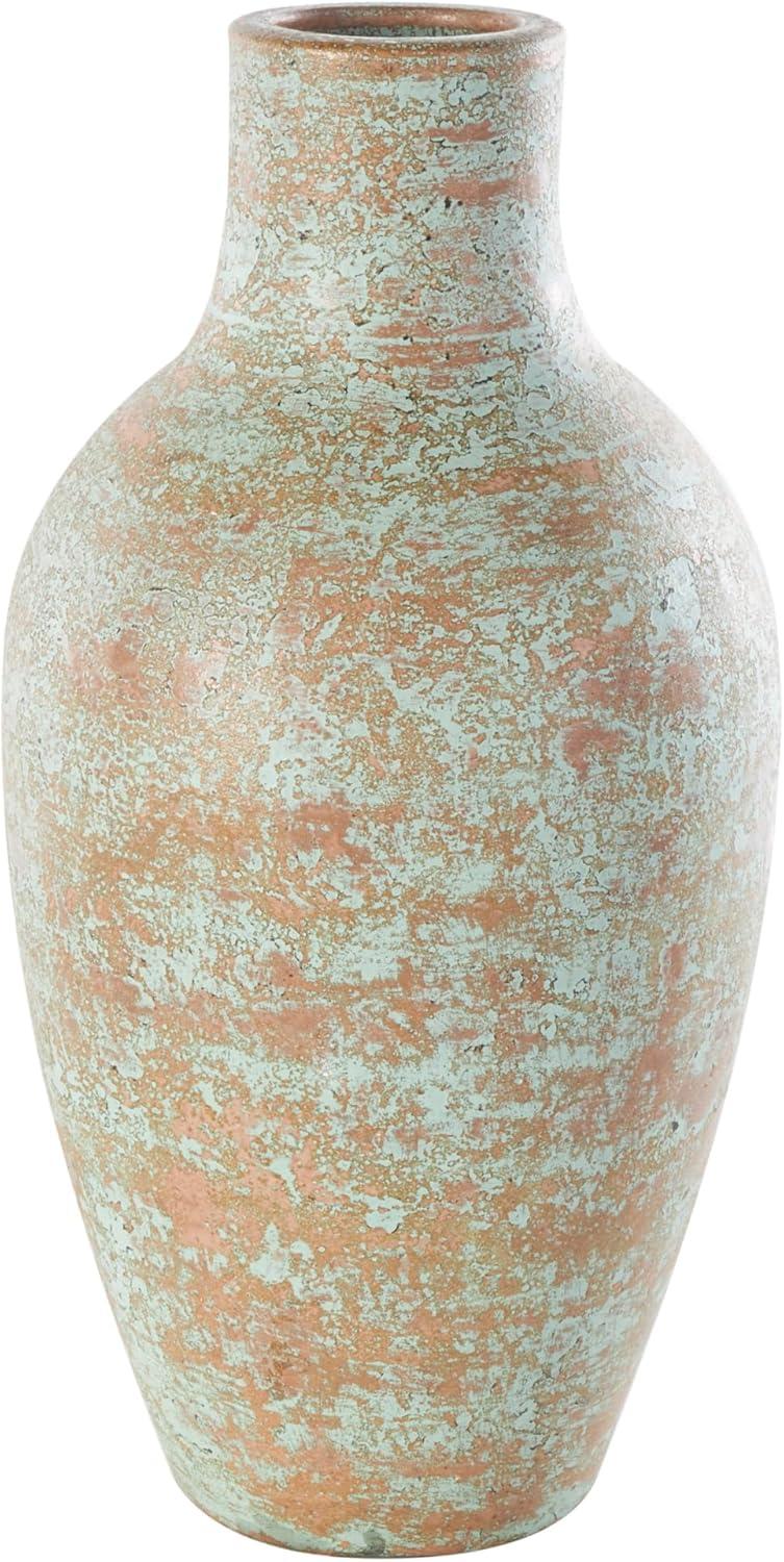 imageDeco 79 Ceramic Decorative Vase Antique Style Textured Centerpiece Vase with Green and Copper Accents Flower Vase for Home Decoration 10quot x 10quot x 14quot BrownGreen