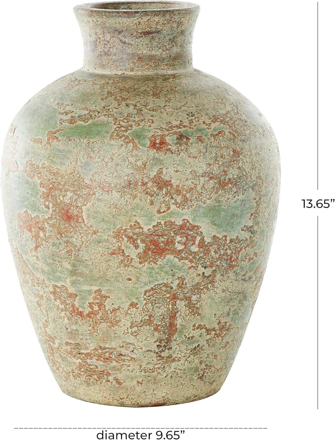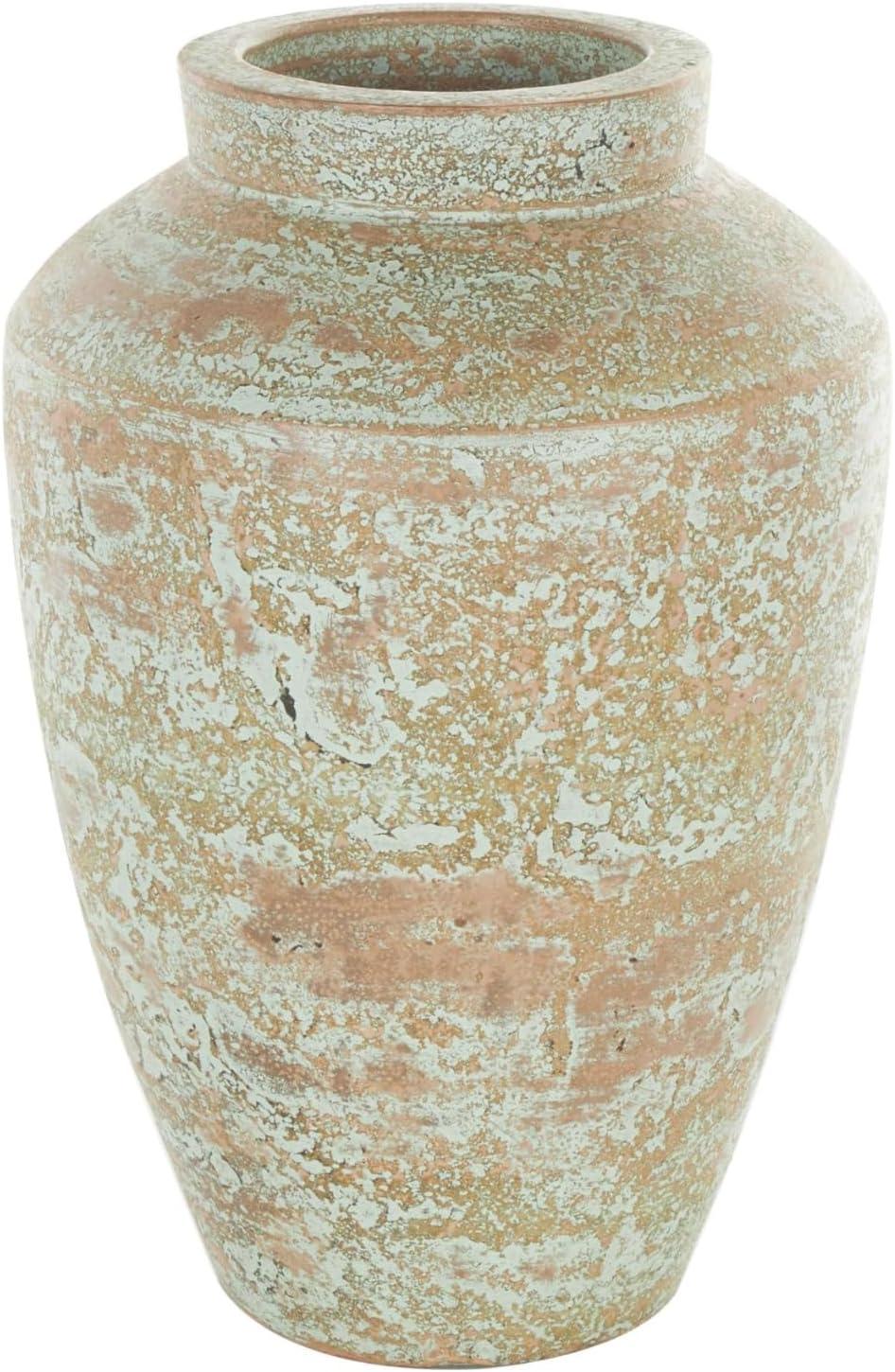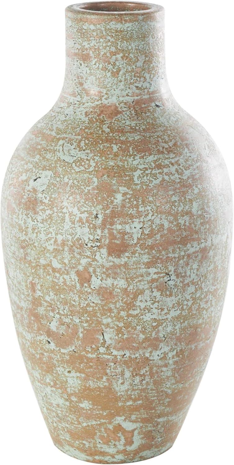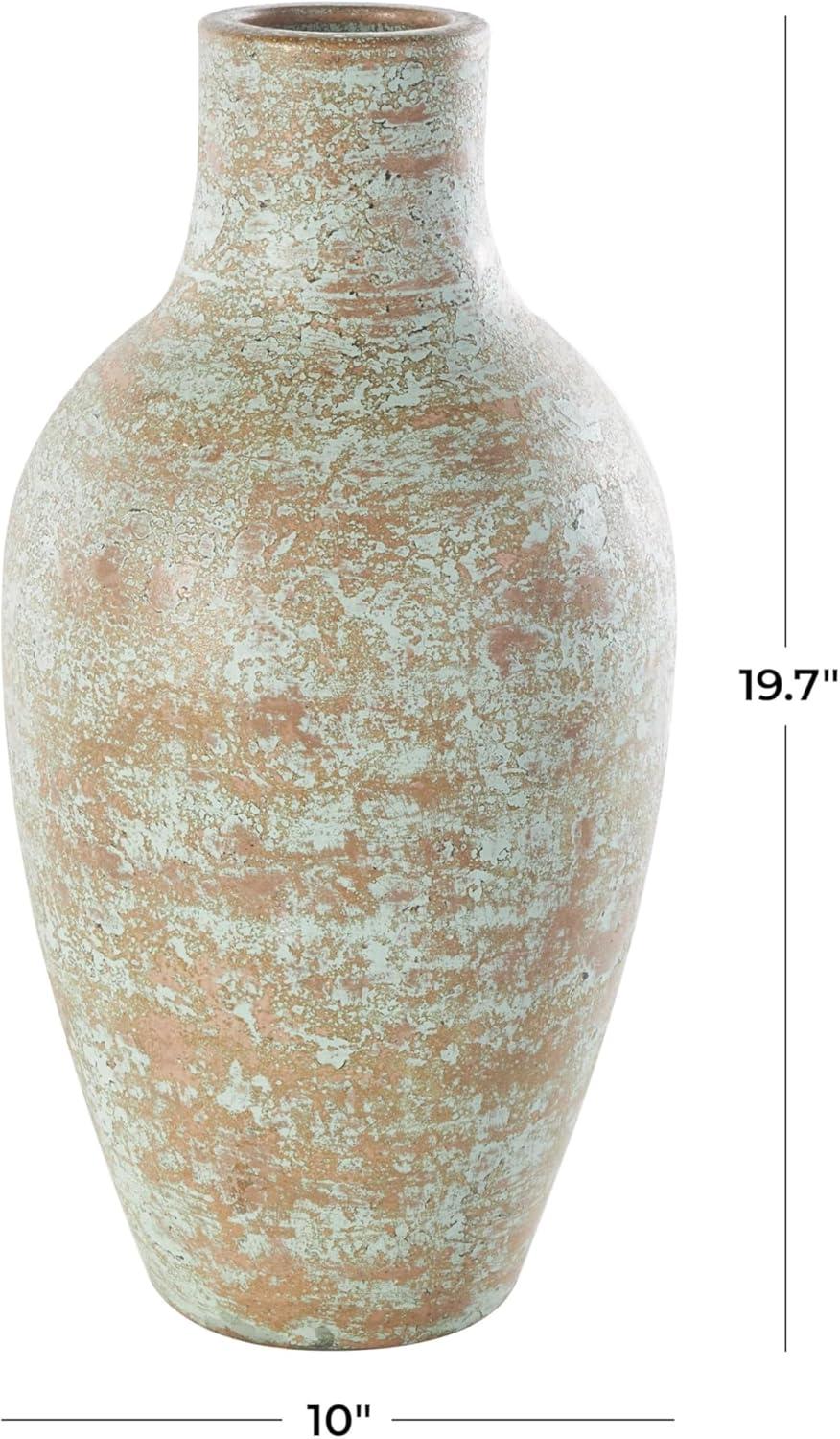 Deco 79 Ceramic Decorative Vase Antique Style Textured Centerpiece Vase with Green and Copper Accents, Flower Vase for Home Decoration 10" x 10" x 14", Brown(Brown)