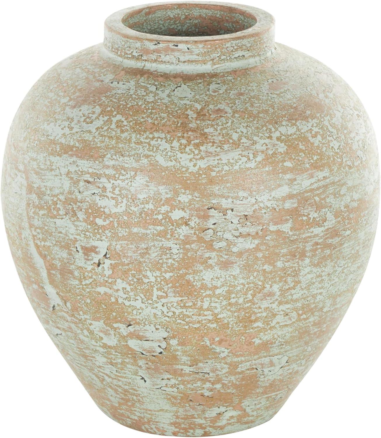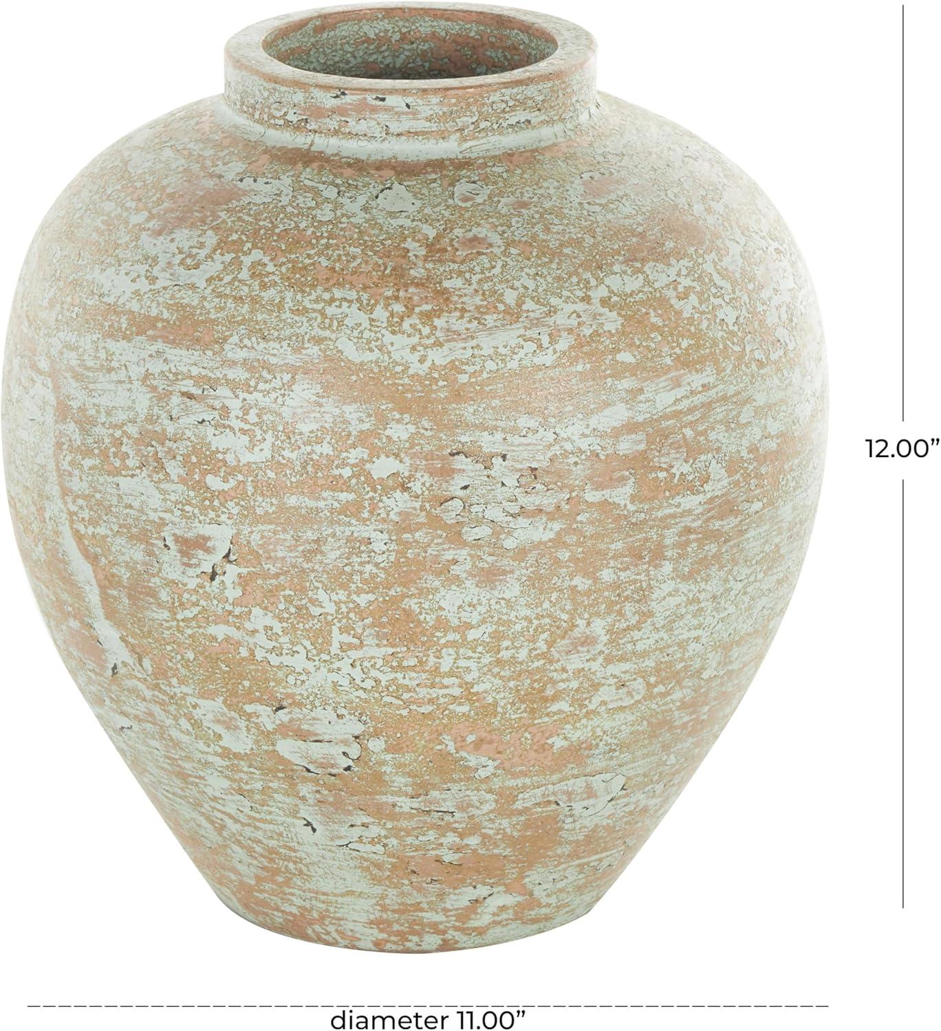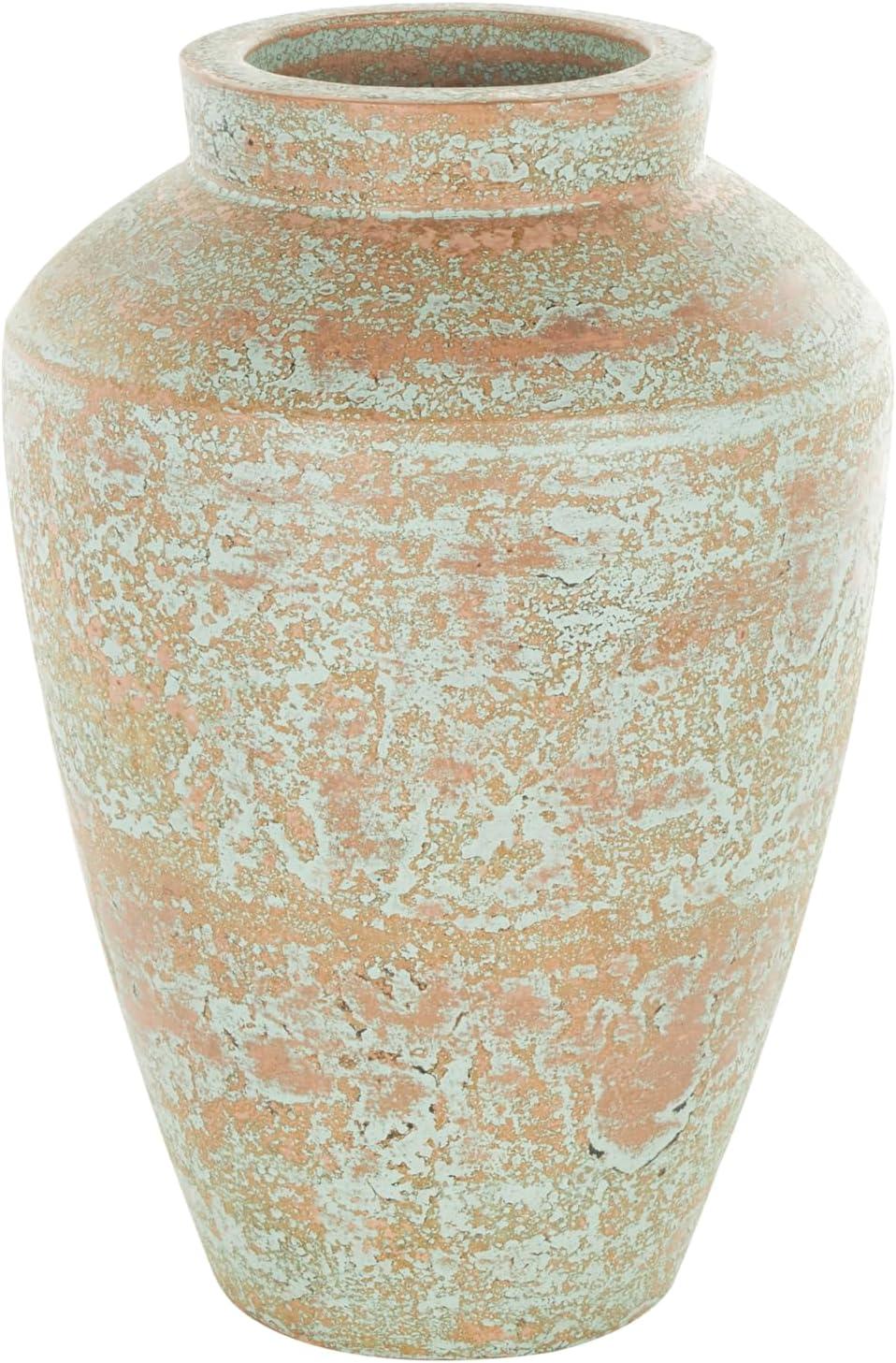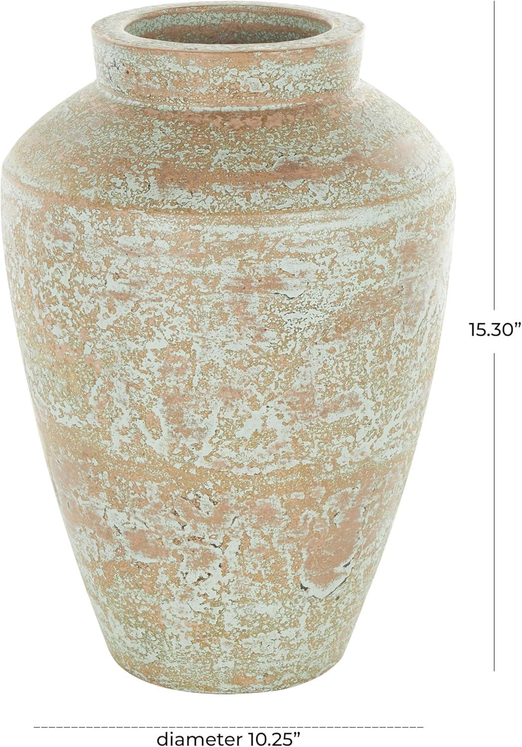 Deco 79 Ceramic Decorative Vase Antique Style Textured Centerpiece Vase with Green and Copper Accents, Flower Vase for Home Decoration 10" x 10" x 14", Brown(Brown)