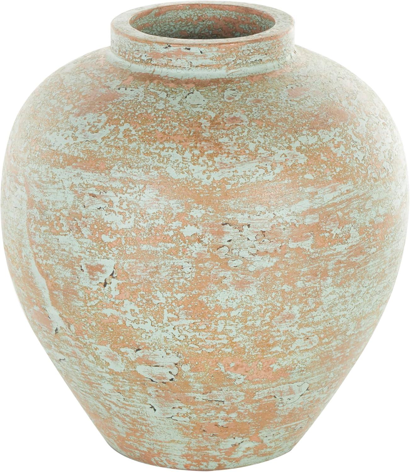 Deco 79 Ceramic Decorative Vase Antique Style Textured Centerpiece Vase with Green and Copper Accents, Flower Vase for Home Decoration 10″ x 10″ x 14″, Brown(Green)