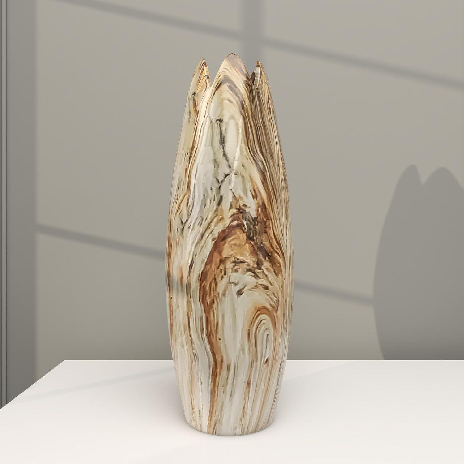 The simplicity with which this Vase is designed is sure to catch everyone's attention. It is made from quality ceramic which ensures long-life of this Vase for a long time. It is crafted in a snifter shape with a flat base. The lovely marble finish with the uniquely designed rim makes it a distinct one. This Vase is an ideal one to embellish any tabletop in the living room, bedroom, dining, kitchen, lobby or Garden area. Place a bunch of flowers or decorative to boost its appeal. It is easy to clean and maintain. Guests and friends coming to your place will definitely be impressed your distinct taste in decor. You can also Opt to use this Vase as a gift option for your near and dear ones. So get one soon.