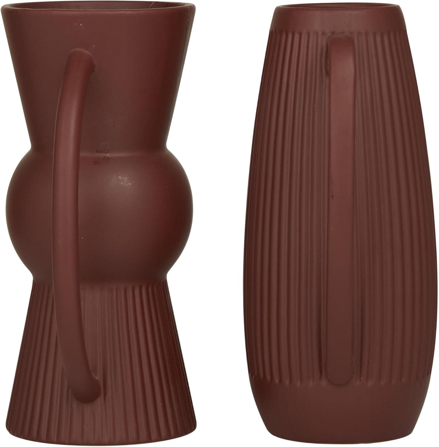 image:imageDeco 79 Ceramic Decorative Vase Ribbed Centerpiece Vases with Handles Set of 2 Flower Vases for Home Decoration 7W 12H RedRed