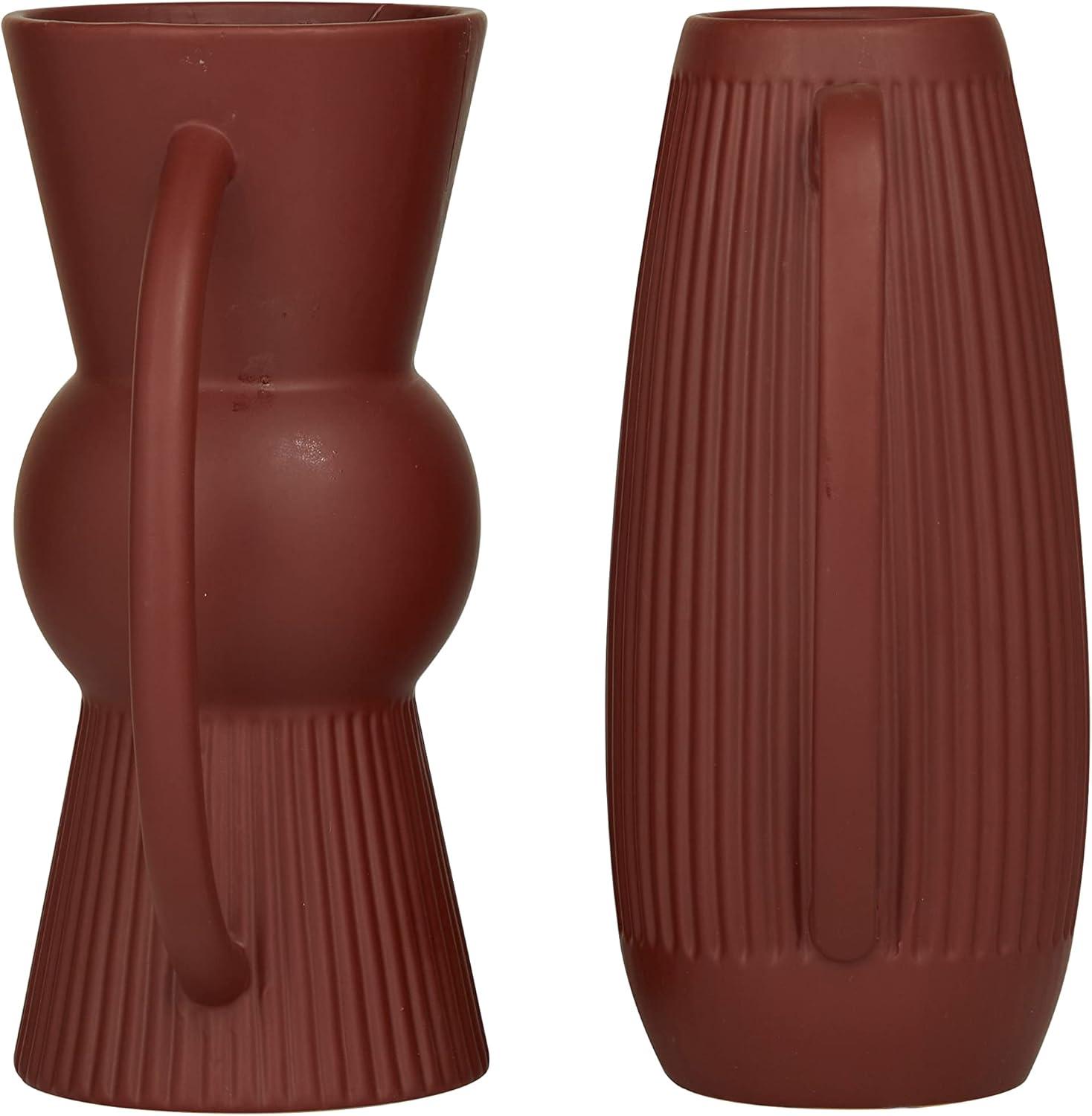 Deco 79 Ceramic Decorative Vase Ribbed Centerpiece Vases with Handles, Set of 2 Flower Vases for Home Decoration 7″W, 12″H, Red(Red)