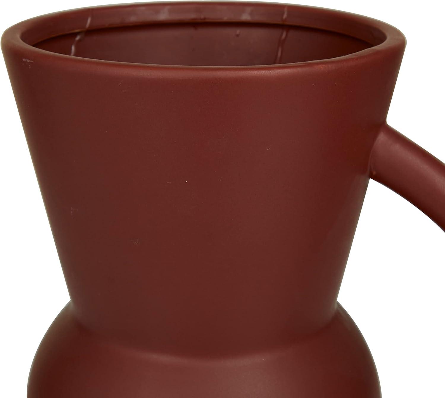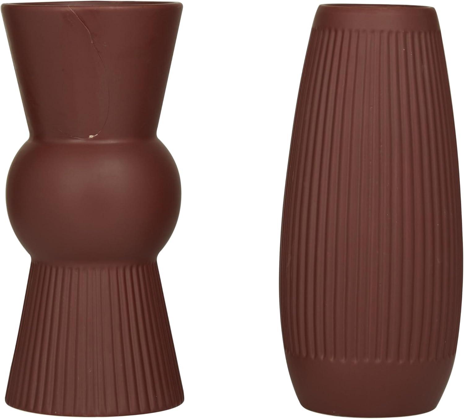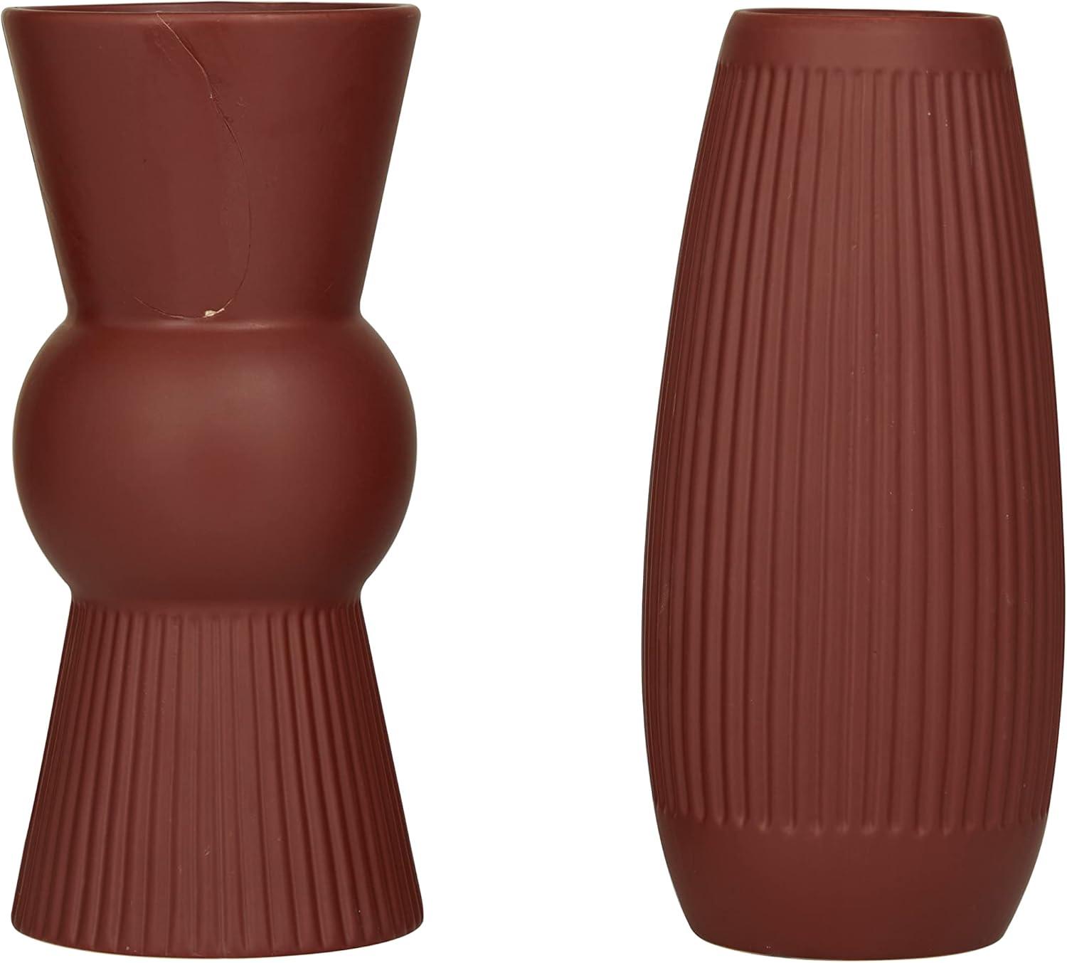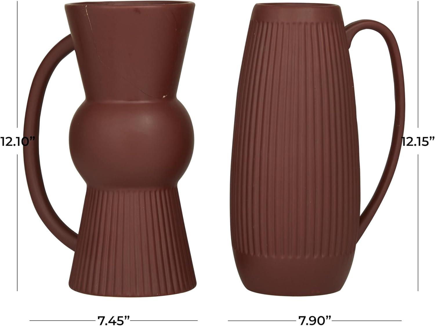 Deco 79 Ceramic Decorative Vase Ribbed Centerpiece Vases with Handles, Set of 2 Flower Vases for Home Decoration 7"W, 12"H, Red(Red)