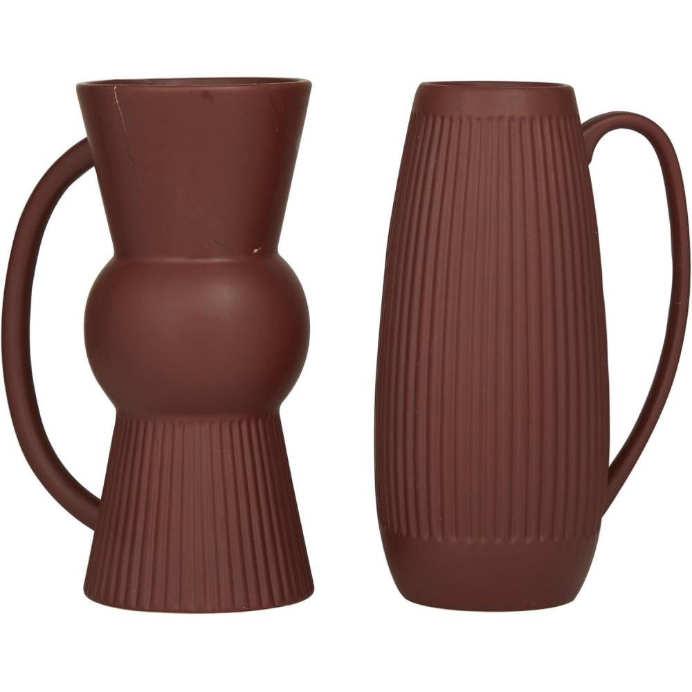 Special Feature This stoneware set of 2 vases boasts ribbed detailing and convenient handles, combining functional design with textured elegance
