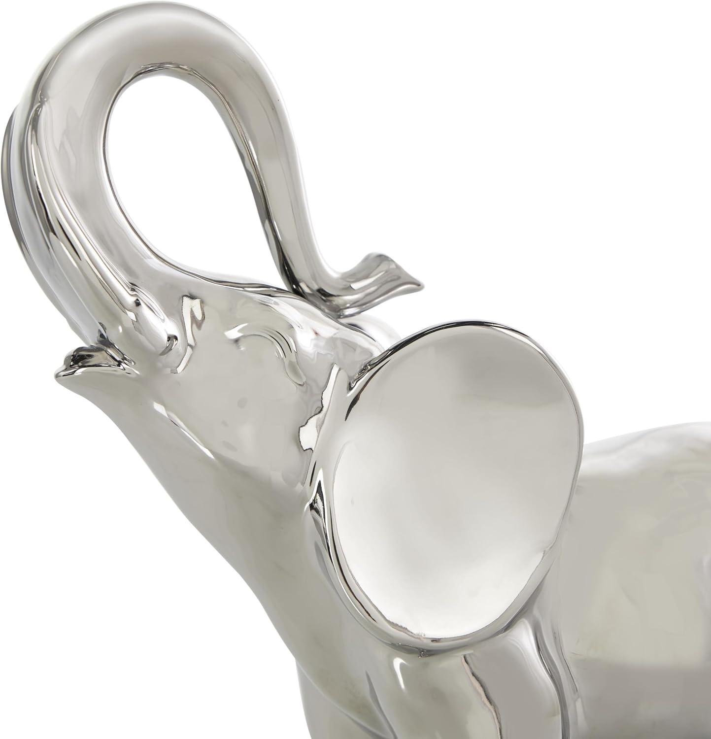 Deco 79 Ceramic Elephant Decorative Sculpture Standing Home Decor Statue, Accent Figurine 10" x 4" x 11", Gold(Silver)