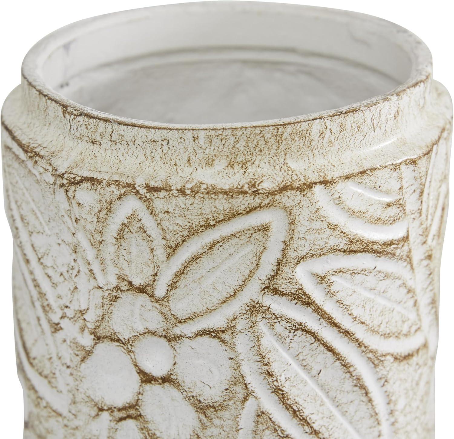 Deco 79 Ceramic Handmade Living Room Decorative Jars Intricately Carved Decorative Container with Wood Lids, Set of 2 Jar with Lid 9", 10"H, White