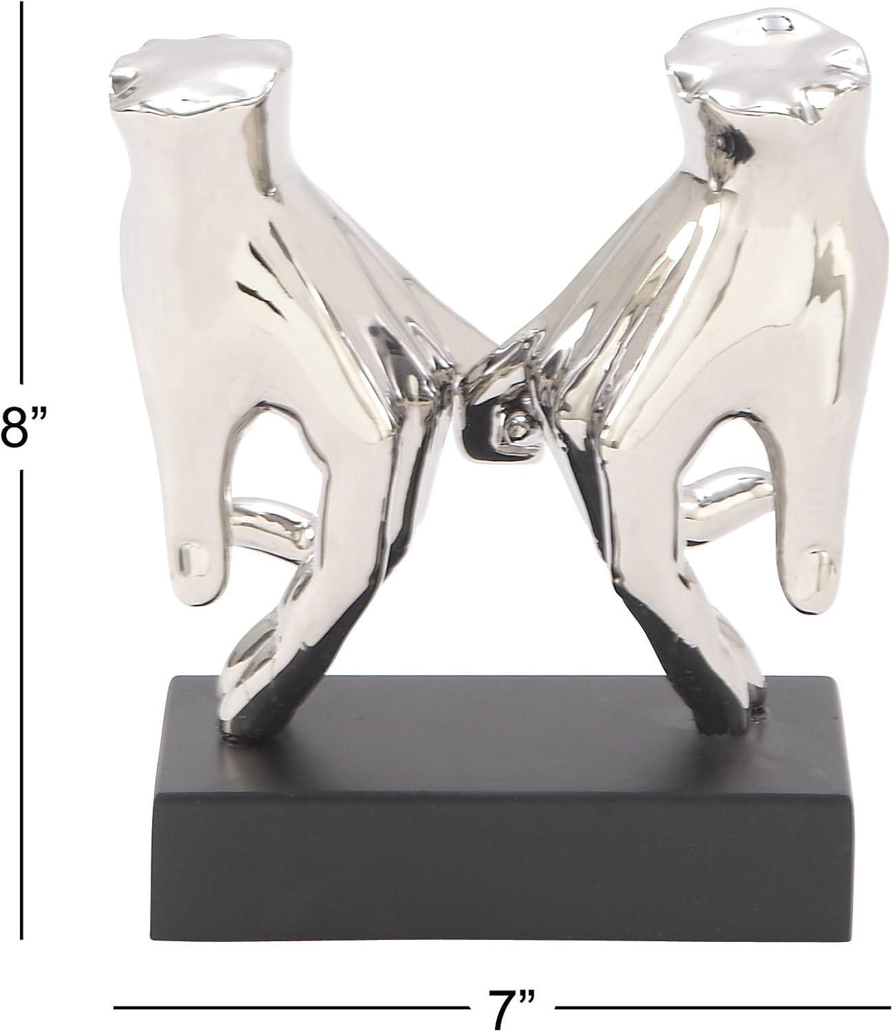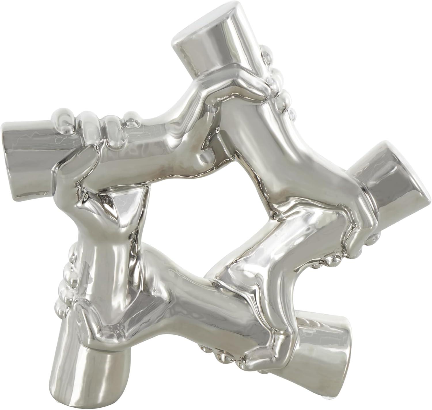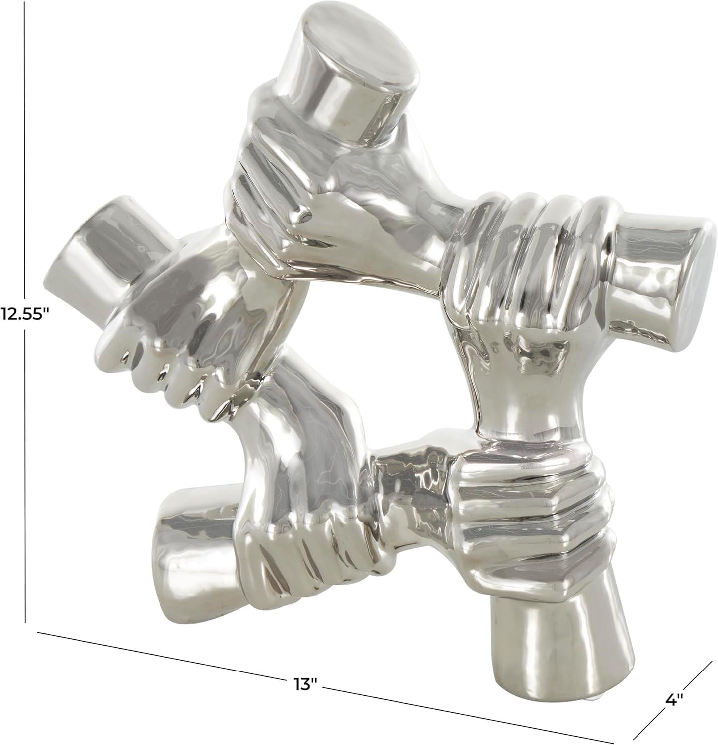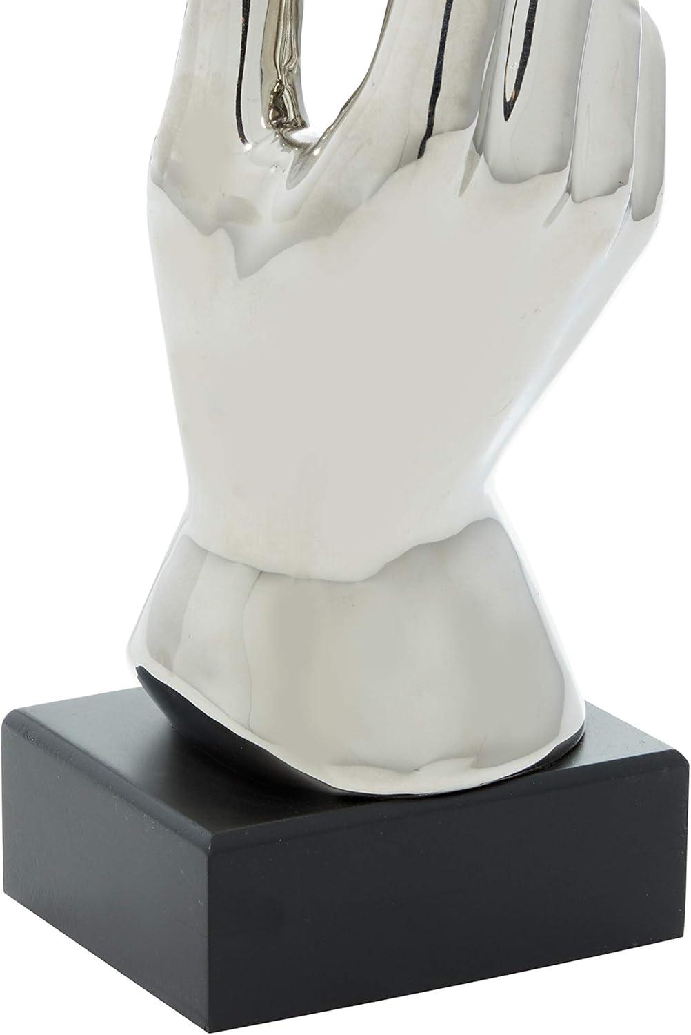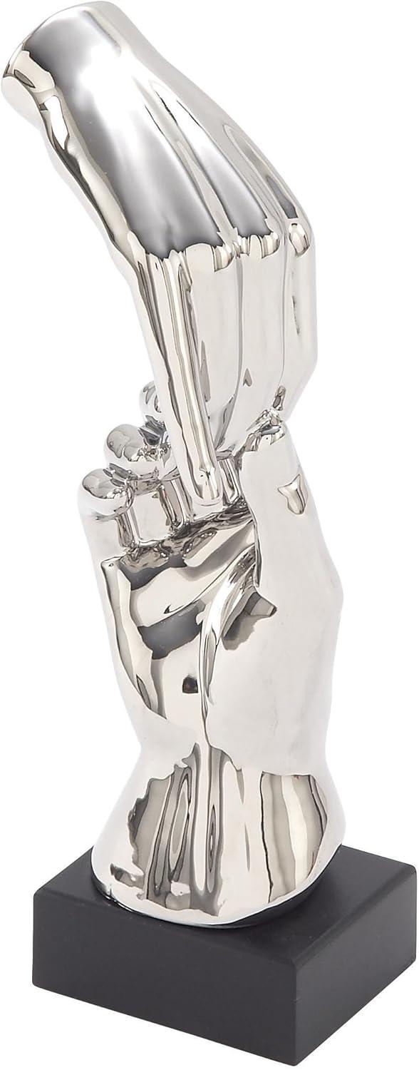 Deco 79 Ceramic Hands Decorative Sculpture Gripping Home Decor Statue, Accent Figurine 13" x 4" x 13", Silver(Silver)